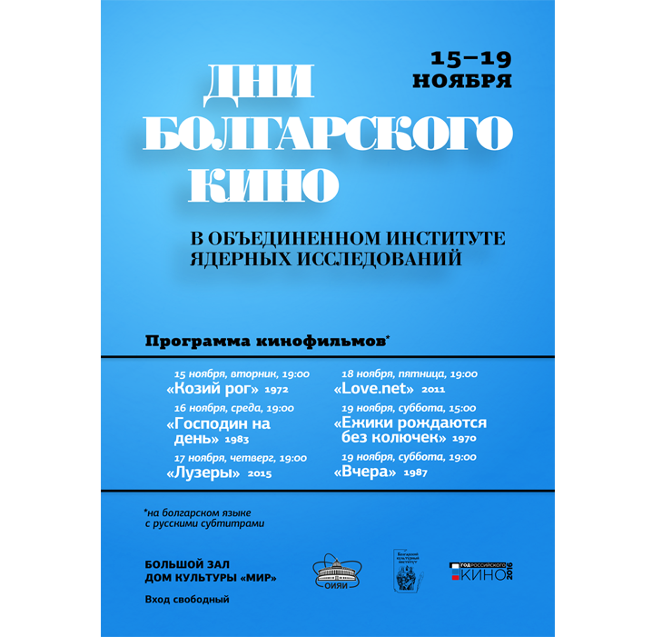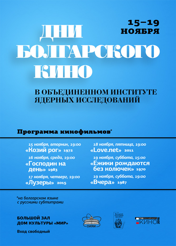 JINR Cultural Centre “Mir” invites everyone to attend the Days of Bulgarian cinema in JINR on 15 – 19 November 2016.