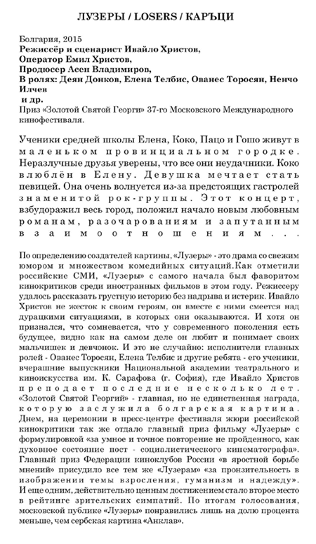 Movies are in Bulgarian language with Russian subtitles. Admission is free.