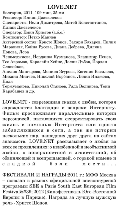 - 18 November, 7:00 PM – “Love.net” (2011)