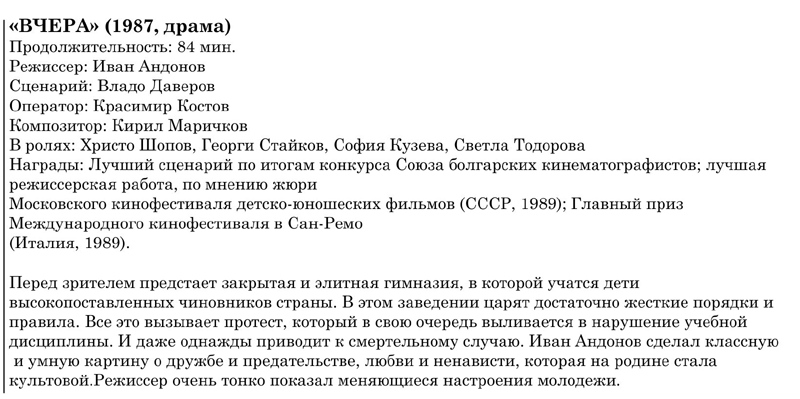 A festive event dedicated to Bulgarian cinema will be held in the evening of 15 November, at 7:00 PM in the Big hall of the JINR Cultural Centre “Mir”.