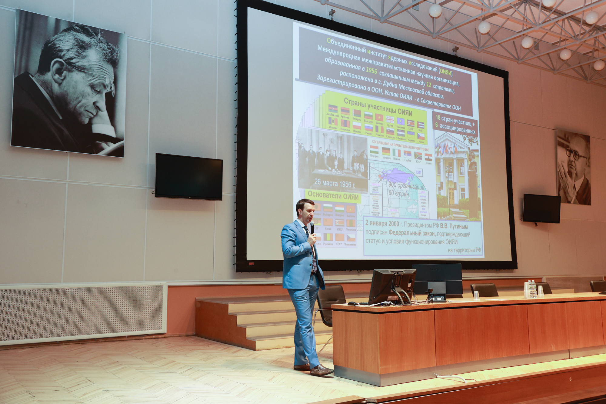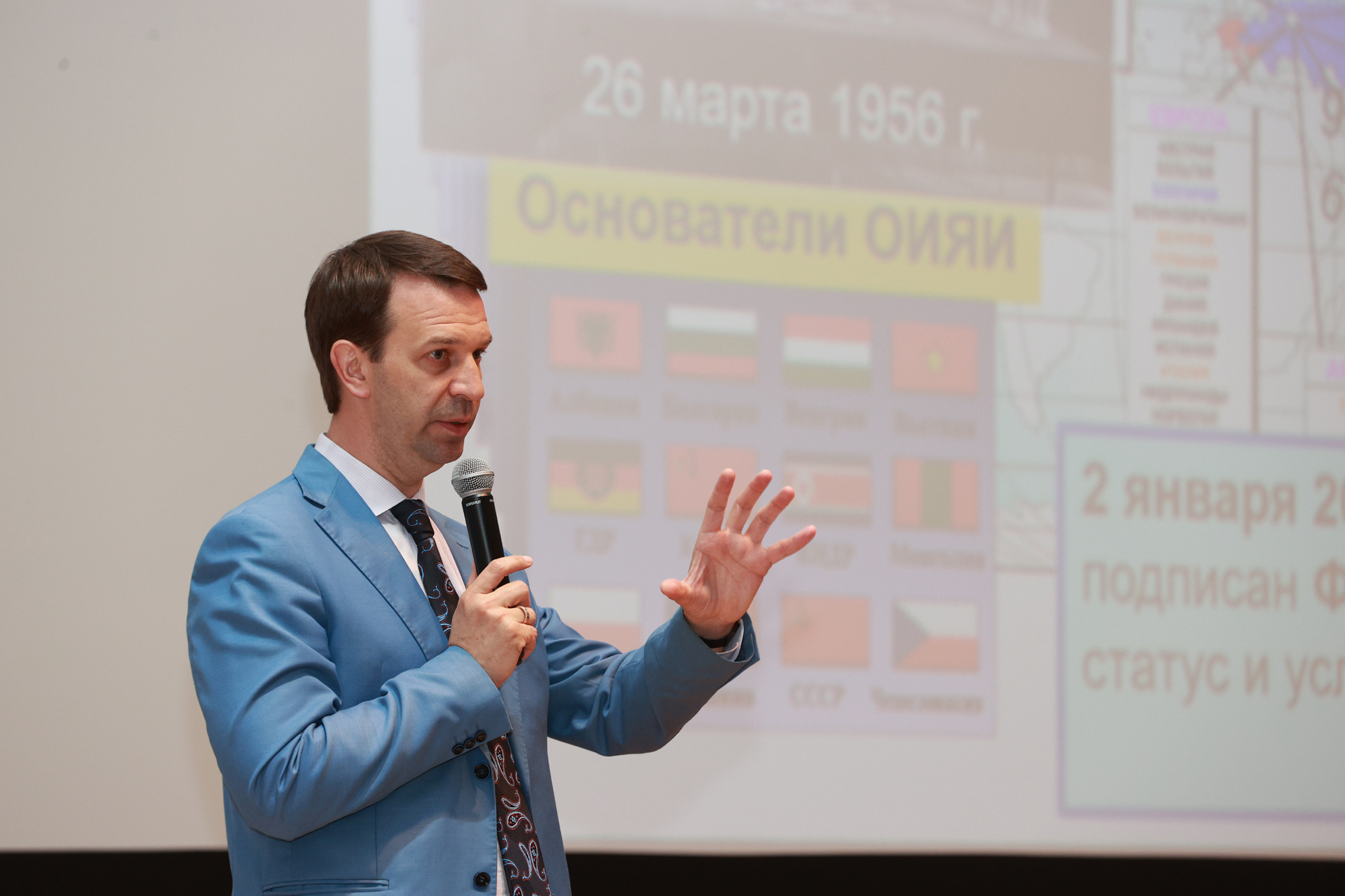 In the VBLHEP Conference Hall, JINR Director Academician Grigory Trubnikov introduced the guests to the history of the creation of the international scientific centre, key achievements of the Institute, and the multidisciplinary research programme, including the work progress in the creation of the NICA collider. The JINR Director also spoke about the capabilities of the new LIT computing complex, the Superheavy Element Factory, the programme of cooperation with the Rosatom State Corporation.