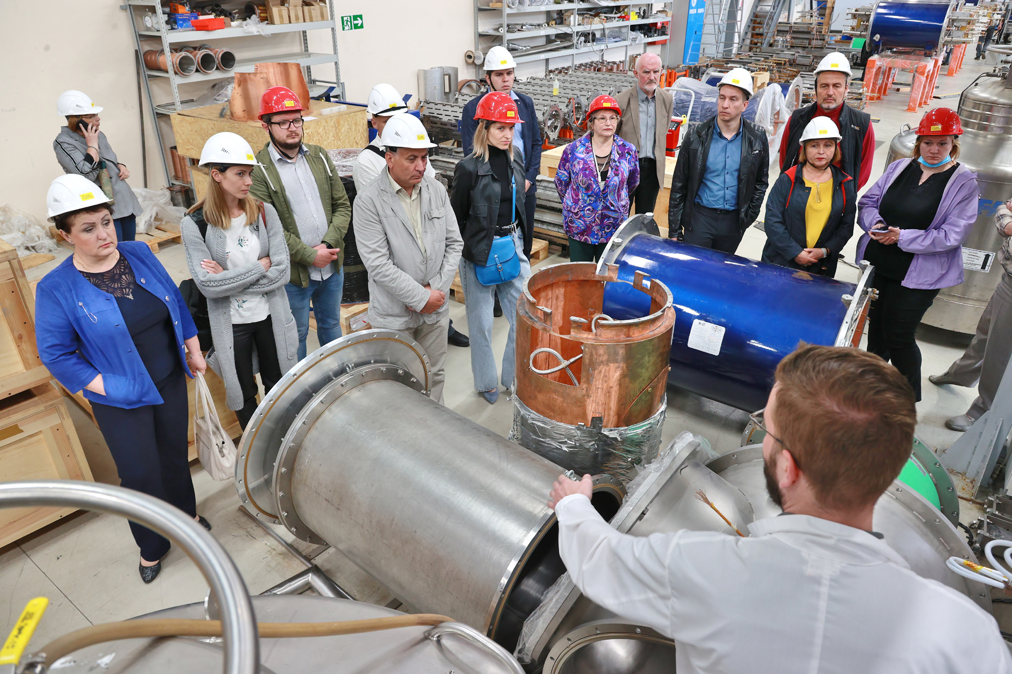 On 9 June, a delegation of the Management Company of the Special Economic Zone “Dubna” headed by Director General Anton Afanasiev visited JINR. The programme of the event included a visit to the VBLHEP site and acquaintance with the objects of the NICA mega-science project under construction.