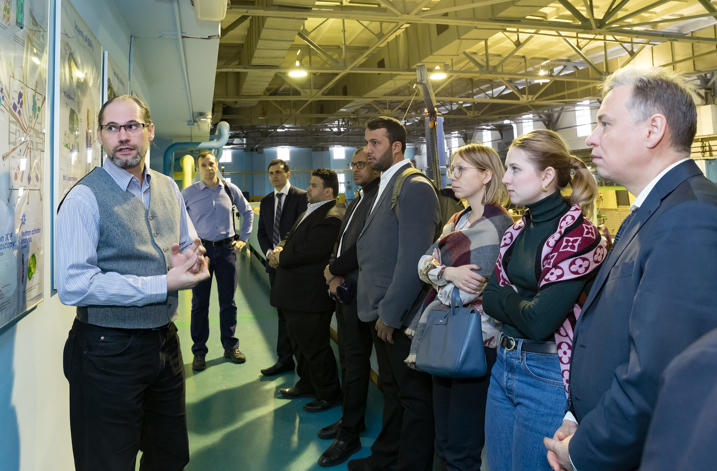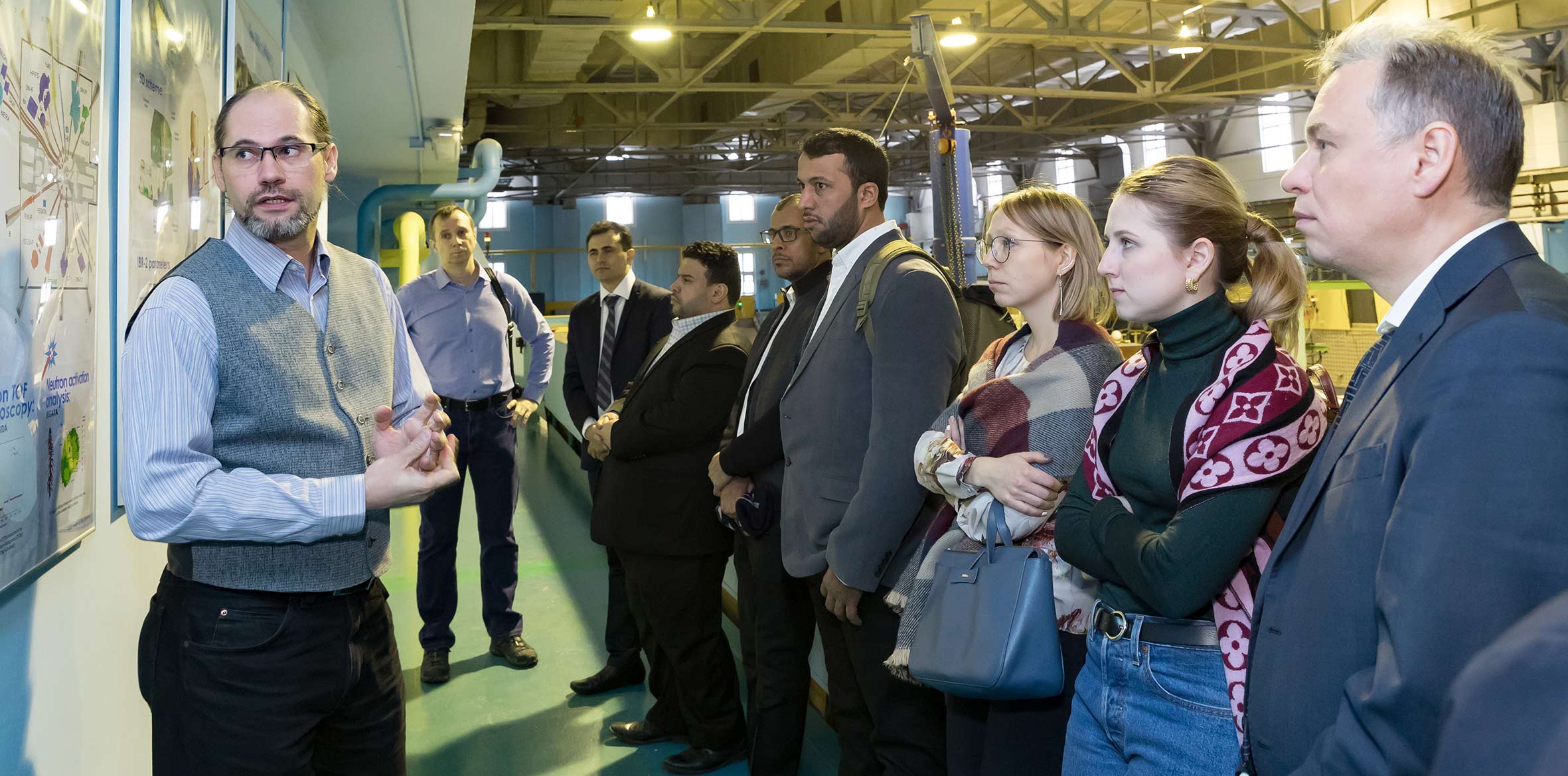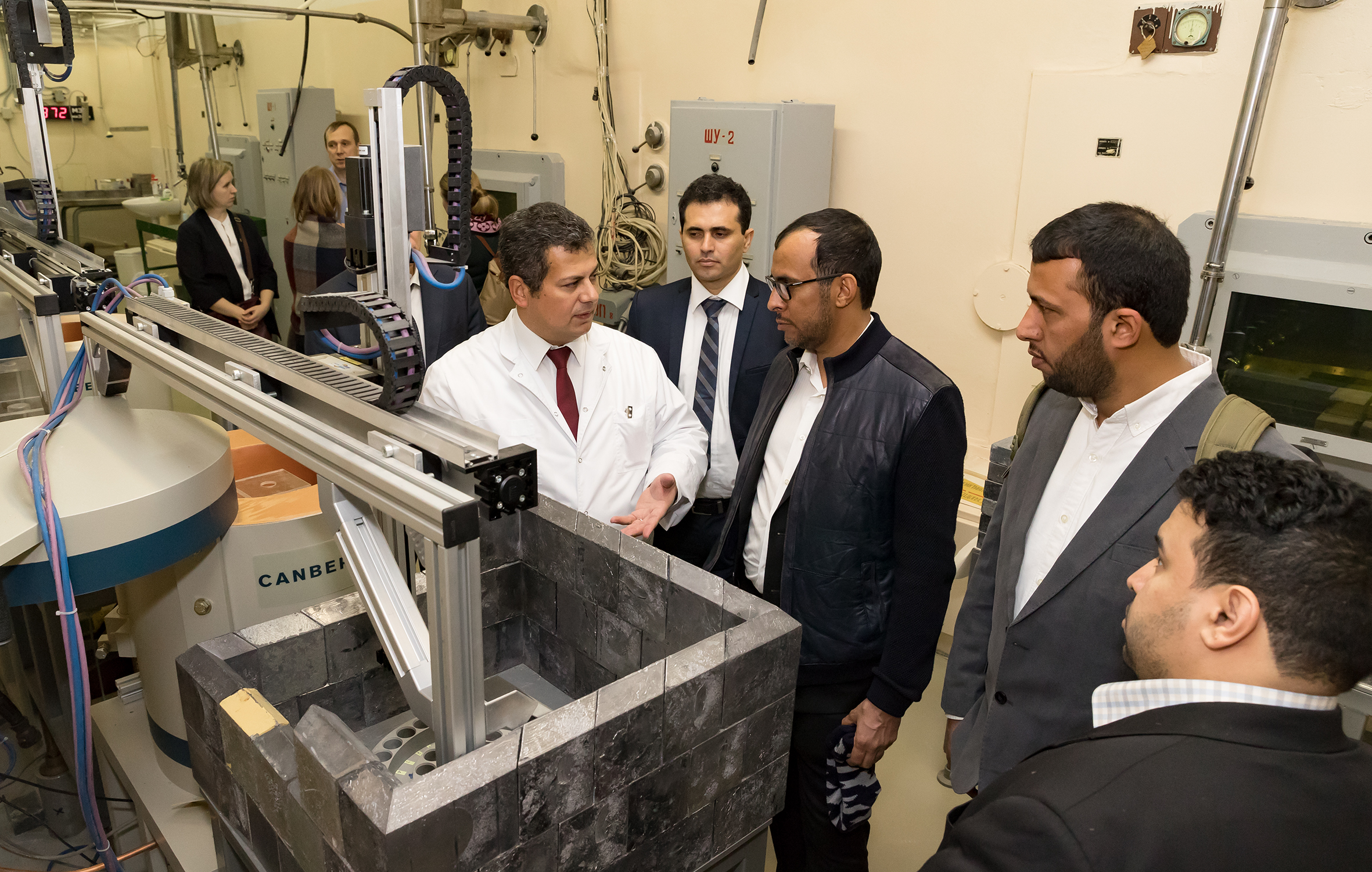 После встречи в Дирекции делегация Саудовской Аравии ознакомилась с научной инфраструктурой ОИЯИ. Гости посетили Лабораторию нейтронной физики, где ознакомились с комплексом спектрометров исследовательского реактора ИБР-2, а также Лабораторию ядерных реакций, где побывали в наноцентре и осмотрели циклотрон ДЦ-280. Визит делегации завершил рабочий обед с участием представителей руководства Института во главе с вице-директором ОИЯИ Борис Шарковым, а также ведущими учеными ЛНФ. Члены делегации подчеркнули, что были впечатлены широтой спектра научных исследований ОИЯИ, отметив направления ускорительных технологий и мониторинга окружающей среды в качестве наиболее перспективных для развития сотрудничества. Также гости проявили большой интерес к условиям получения Саудовской Аравией статуса страны — ассоциированного члена ОИЯИ. Члены делегации с энтузиазмом восприняли предложение более детально ознакомиться с Институтом в рамках одной из ближайших стажировок для научно-административного персонала JEMS.