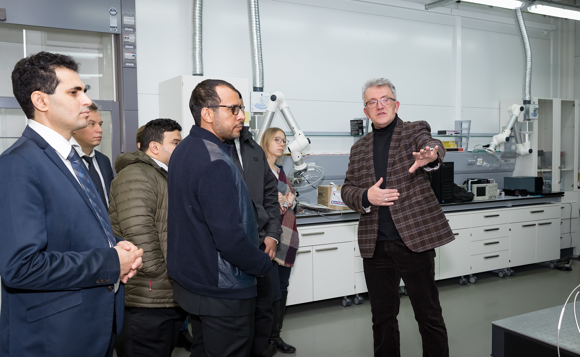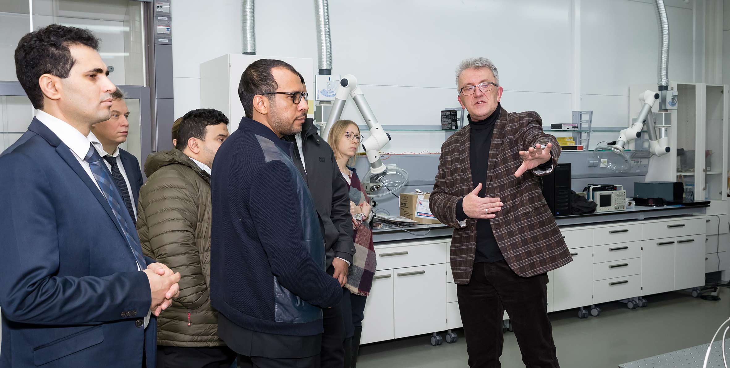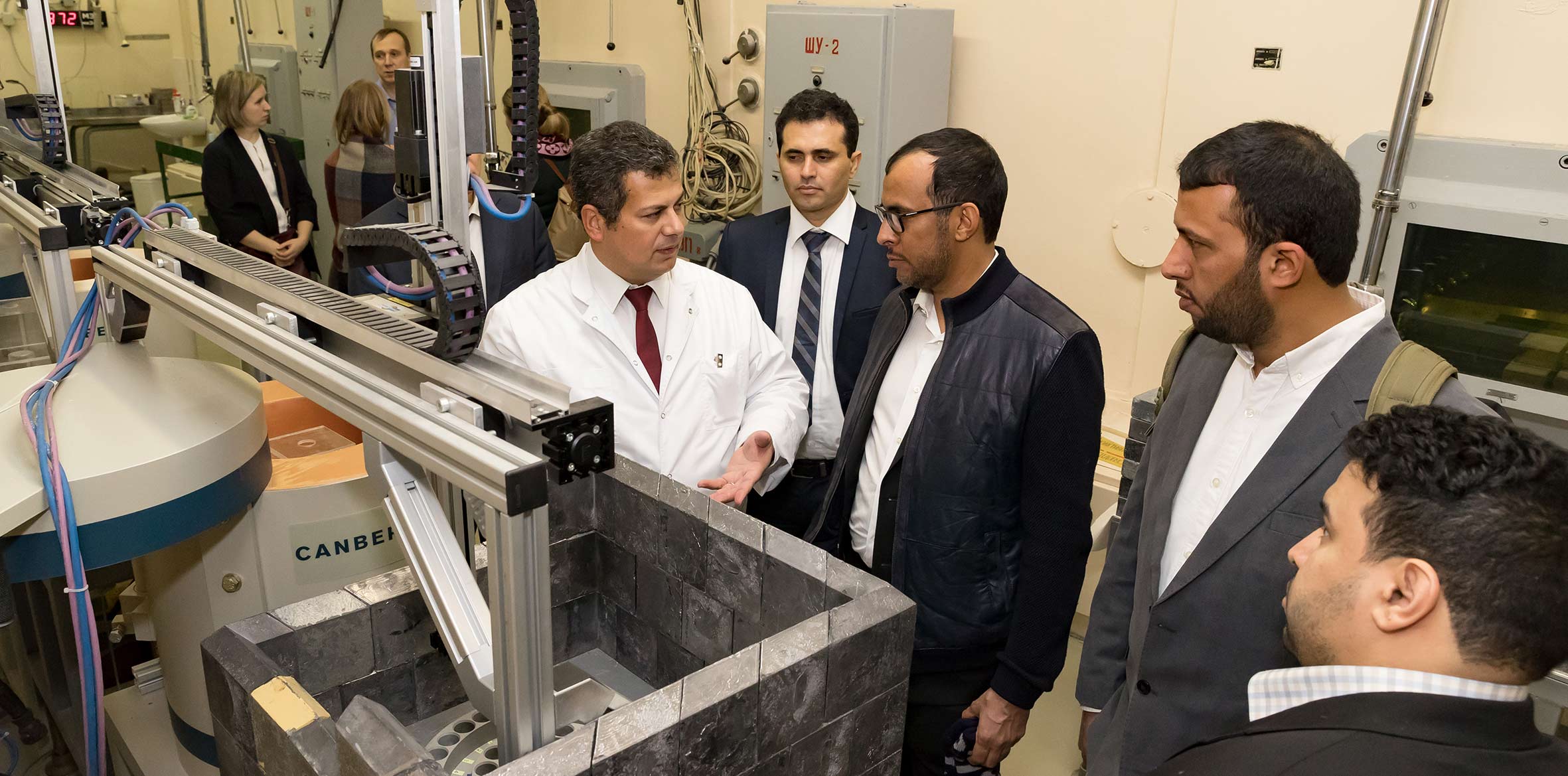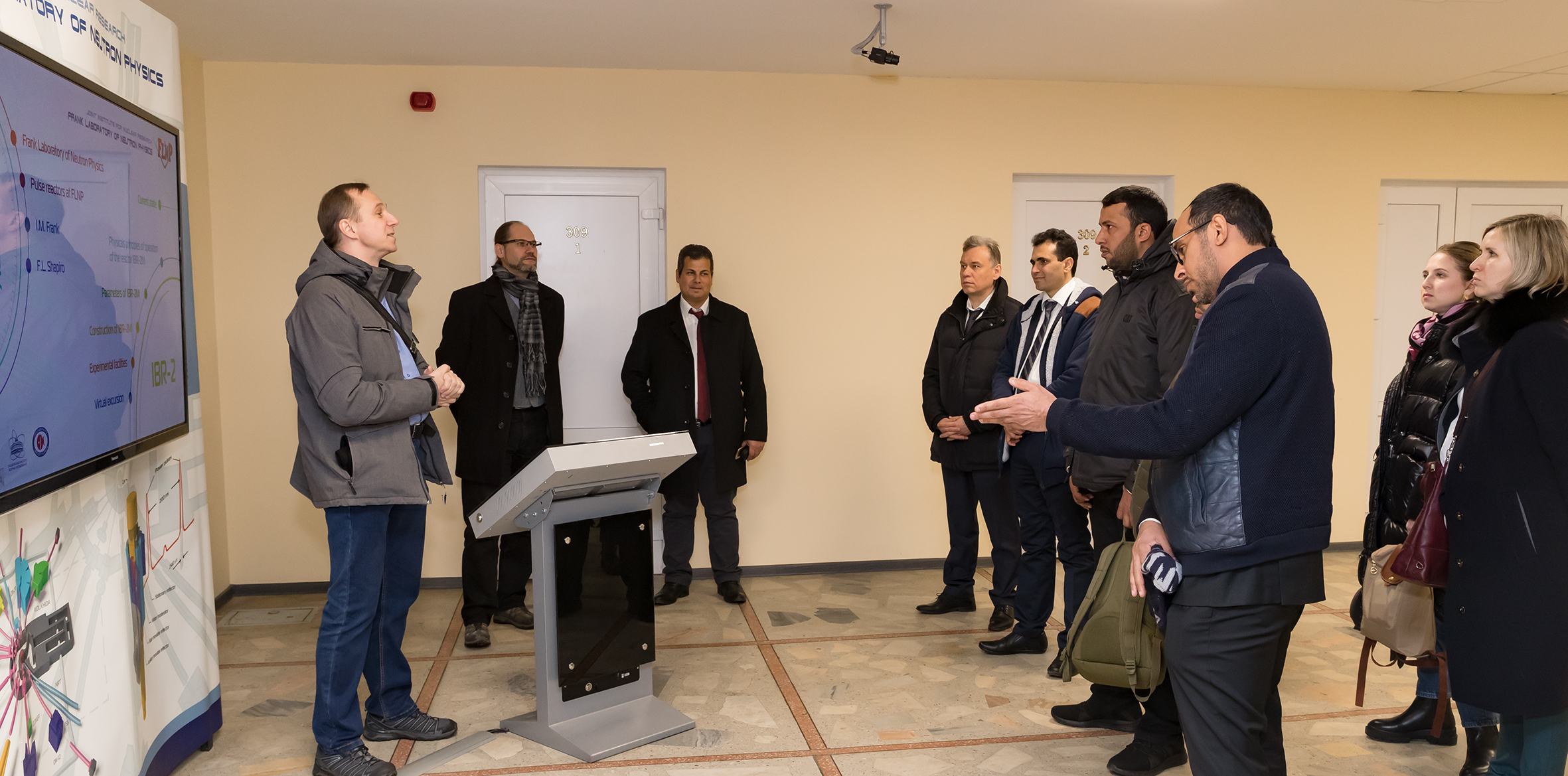 После встречи в Дирекции делегация Саудовской Аравии ознакомилась с научной инфраструктурой ОИЯИ. Гости посетили Лабораторию нейтронной физики, где ознакомились с комплексом спектрометров исследовательского реактора ИБР-2, а также Лабораторию ядерных реакций, где побывали в наноцентре и осмотрели циклотрон ДЦ-280. Визит делегации завершил рабочий обед с участием представителей руководства Института во главе с вице-директором ОИЯИ Борис Шарковым, а также ведущими учеными ЛНФ. Члены делегации подчеркнули, что были впечатлены широтой спектра научных исследований ОИЯИ, отметив направления ускорительных технологий и мониторинга окружающей среды в качестве наиболее перспективных для развития сотрудничества. Также гости проявили большой интерес к условиям получения Саудовской Аравией статуса страны — ассоциированного члена ОИЯИ. Члены делегации с энтузиазмом восприняли предложение более детально ознакомиться с Институтом в рамках одной из ближайших стажировок для научно-административного персонала JEMS.