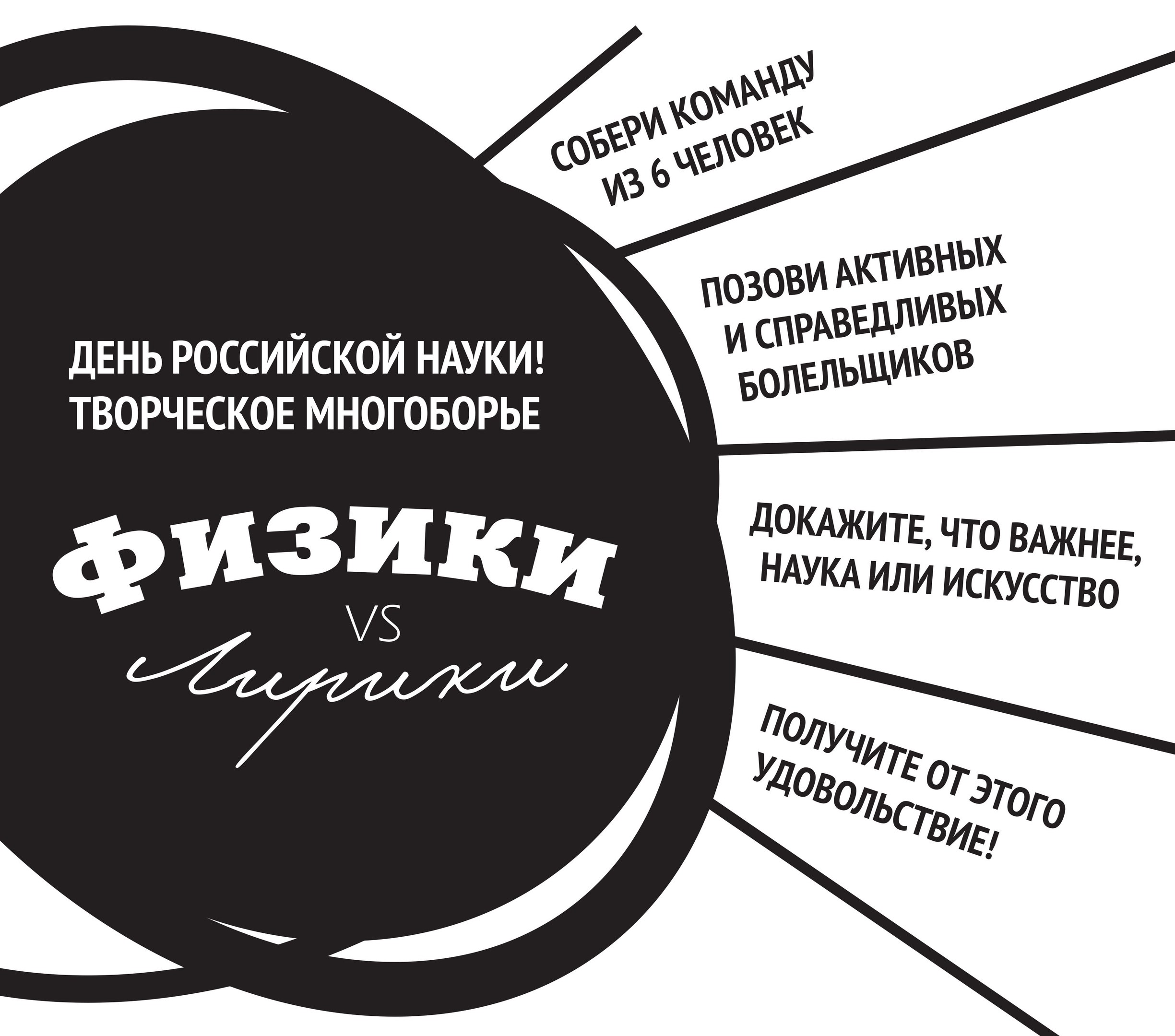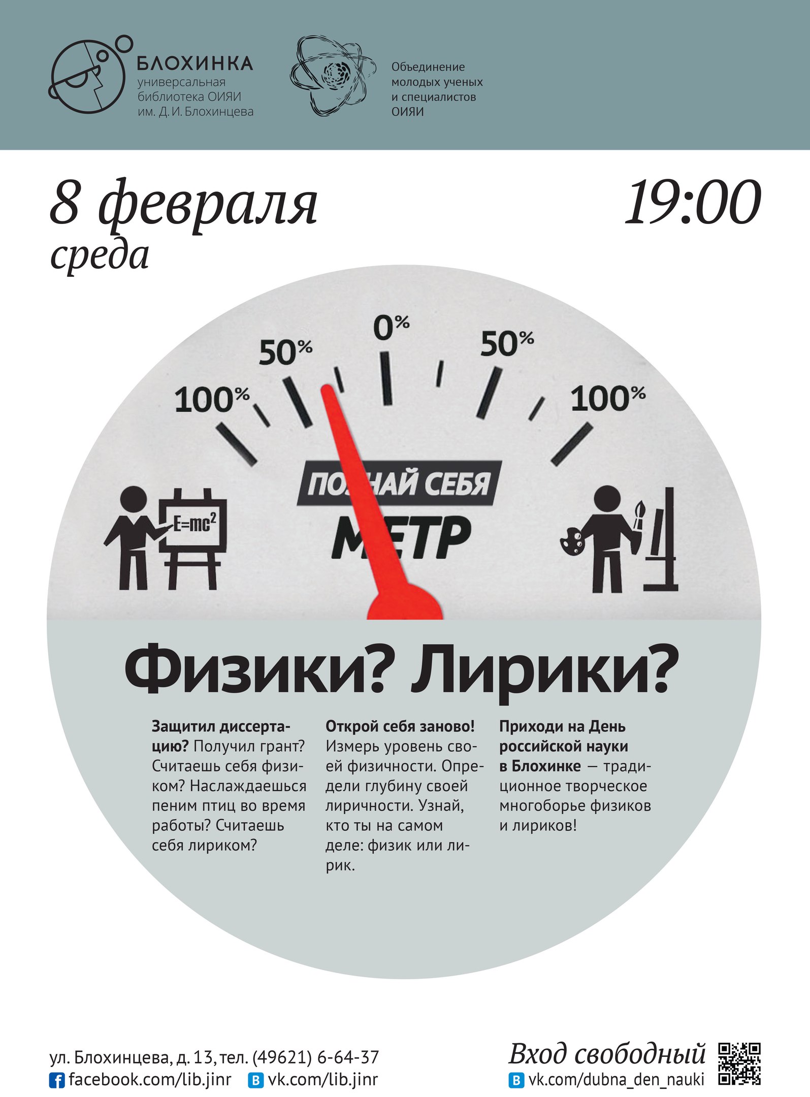 Объединение молодых ученых и специалистов ОИЯИ и Универсальная библиотека ОИЯИ им. Д.И.Блохинцева предлагают весело отпраздновать День российской науки и приглашают всех желающих на IV творческое многоборье “Физики? Лирики?”.