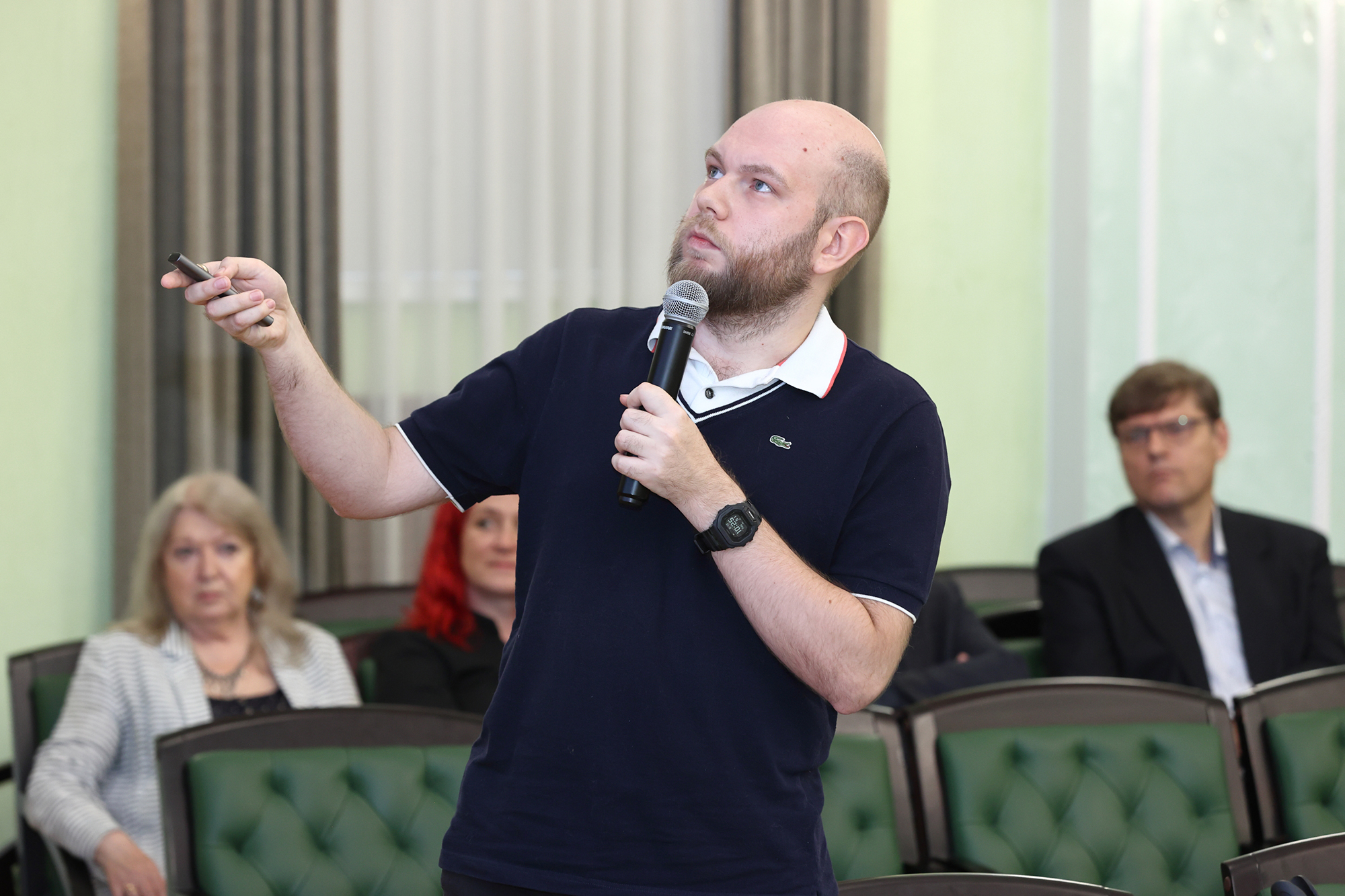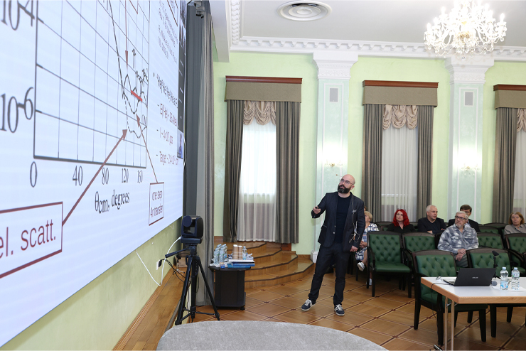 A researcher at the DLNP JINR Mass Separator Sector Vladimir Trofimov reported on the development of low-temperature detection systems for the study of coherent elastic scattering of neutrinos on atoms, nuclei, and electrons as part of SATURNE (Sarov tritium neutrino experiment). This nuclear physics project is aimed at studying rare events caused by weakly interacting particles in the low energy range.