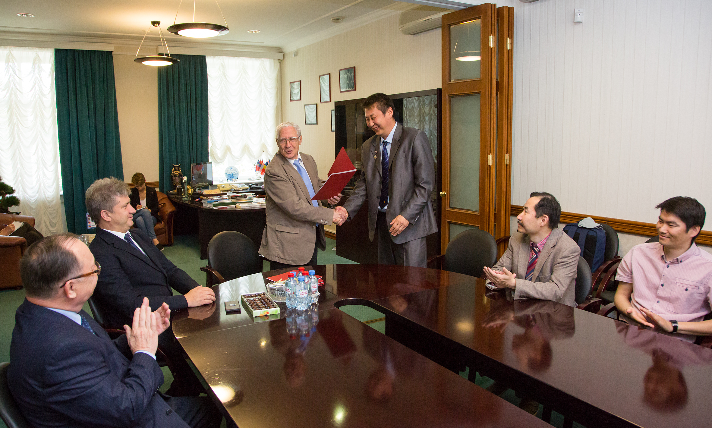 М.Г.Иткис тепло поздравил монгольских коллег с национальным праздником, отметив давние братские связи Монголии и страны местопребывания ОИЯИ – Российской Федерации. Он особенно подчеркнул, значительный вклад Монголии в становление и развитие ОИЯИ, а также то, что уже более 60 лет Монголию и ОИЯИ связывают стабильные и плодотворные научные отношения как в области фундаментальных, так и прикладных исследований.