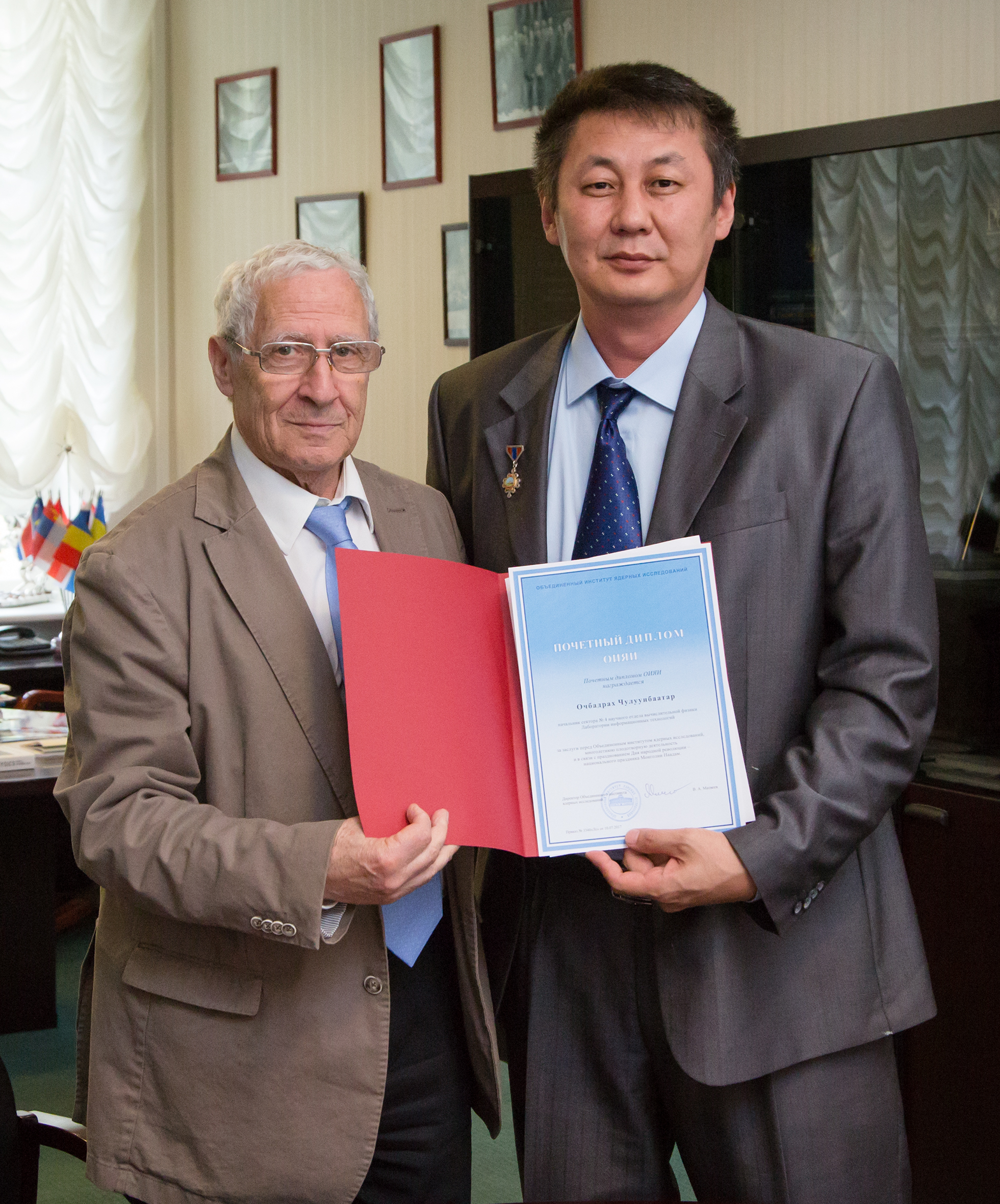 По случаю национального праздника ряд монгольских сотрудников был отмечен наградами Института. За значительный вклад в научную деятельность Института О.Чулуунбаатар был награжден Почетным дипломом ОИЯИ, также были вручены благодарственные письма от ОИЯИ старшему научному сотруднику ЛТФ Гуржаву Ганболду, научным сотрудникам ЛНФ Цолмону Цогтсайхану и Даваасурену Сумхуу.
