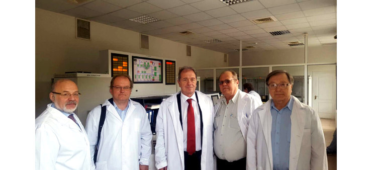 27 мая делегация Объединенного Института посетила Институт ядерных исследований Национальной академии наук Украины. Директор ИЯИ НАНУ В.И.Слисенко рассказал о научных направлениях института и провел экскурсию на исследовательский реактор ВВР-М. На встрече обсуждалась возможность использования учебного центра ИЯИ для практики физиков-инженеров из стран-участниц ОИЯИ в области ядерной энергетики и ядерной безопасности.