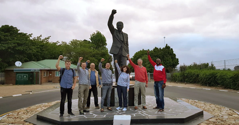 Интенсивная работа делегации ОИЯИ в ЮАР продолжилась и за рамками Симпозиума — в научных организациях ЮАР по совместным проектам. Так, 9 ноября часть международного коллектива участников Симпозиума отправилась в Порт-Элизабет, где в университете Нельсона Манделы под руководством Я. Нитлига уже 10 лет работает Центр трансмиссионной электронной микроскопии высокого разрешения (CHRTEM), образовавший вместе с Центром прикладной физики ЛЯР ось взаимовыгодного сотрудничества, собравшую вокруг себя большую коллаборацию из стран-участниц ОИЯИ.