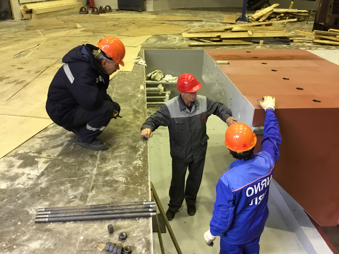 Монтаж идет «с колес» бригадами под руководством А.В. Ломовцева и А.В. Решетова, технологическое и проектное руководство осуществляют Н.Ф. Осипов и Г.Н. Иванов. И всему этому процессу предшествовала полная драматизма, серьезнейшая процедура освидетельствования крана зала циклотрона. Комиссия подписала акты только 14 сентября, за день старта монтажа.