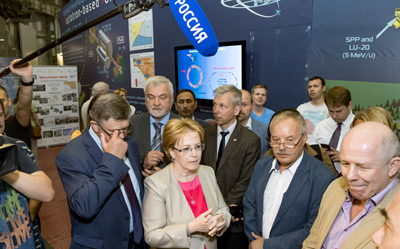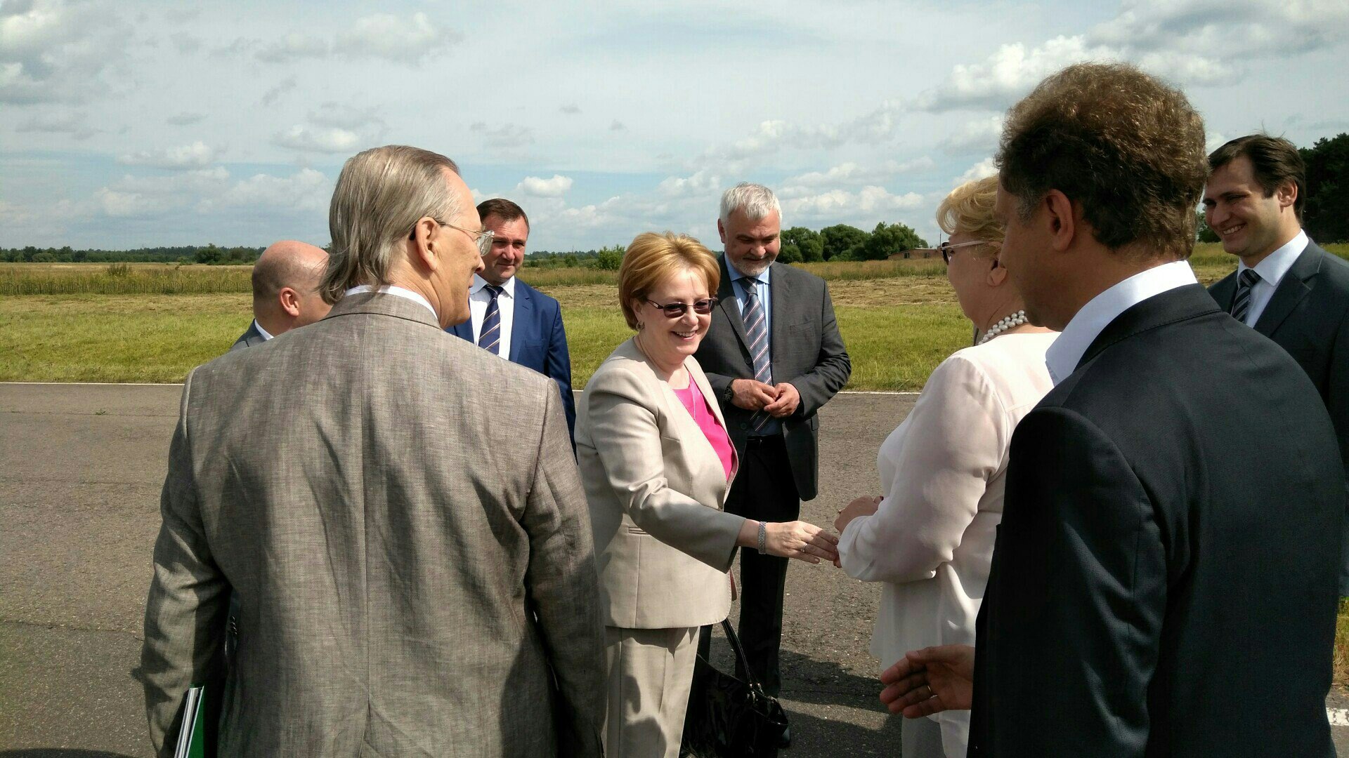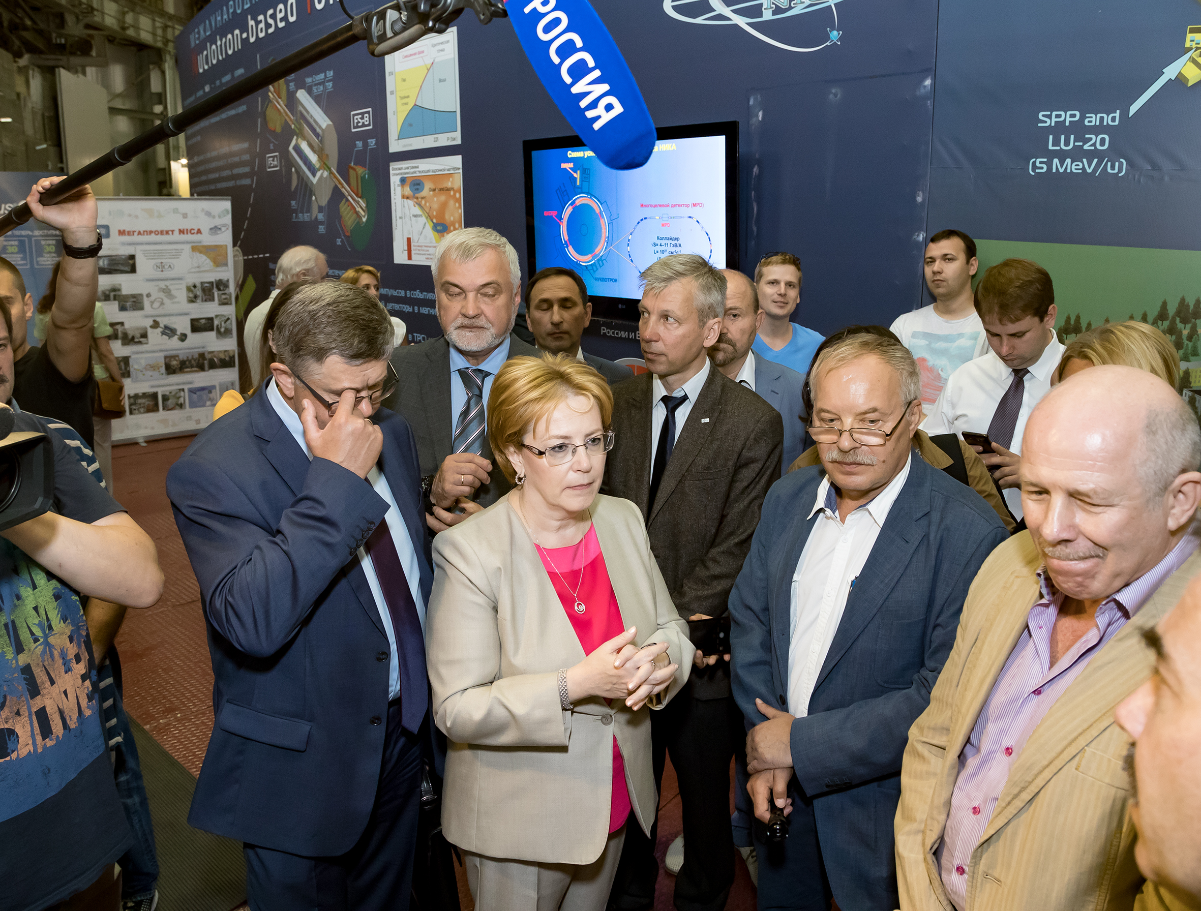 Министра приветствовали мэр города В.Б. Мухин и руководство Объединенного института ядерных исследований. ОИЯИ был представлен директором ОИЯИ В.А. Матвеевым, помощником директора ОИЯИ Г.Д. Ширковым, главным ученым секретарем Лаборатории физики высоких энергий ОИЯИ Д.В. Пешехоновым и руководителем Управления социальной инфраструктуры ОИЯИ А.В. Тамоновым.