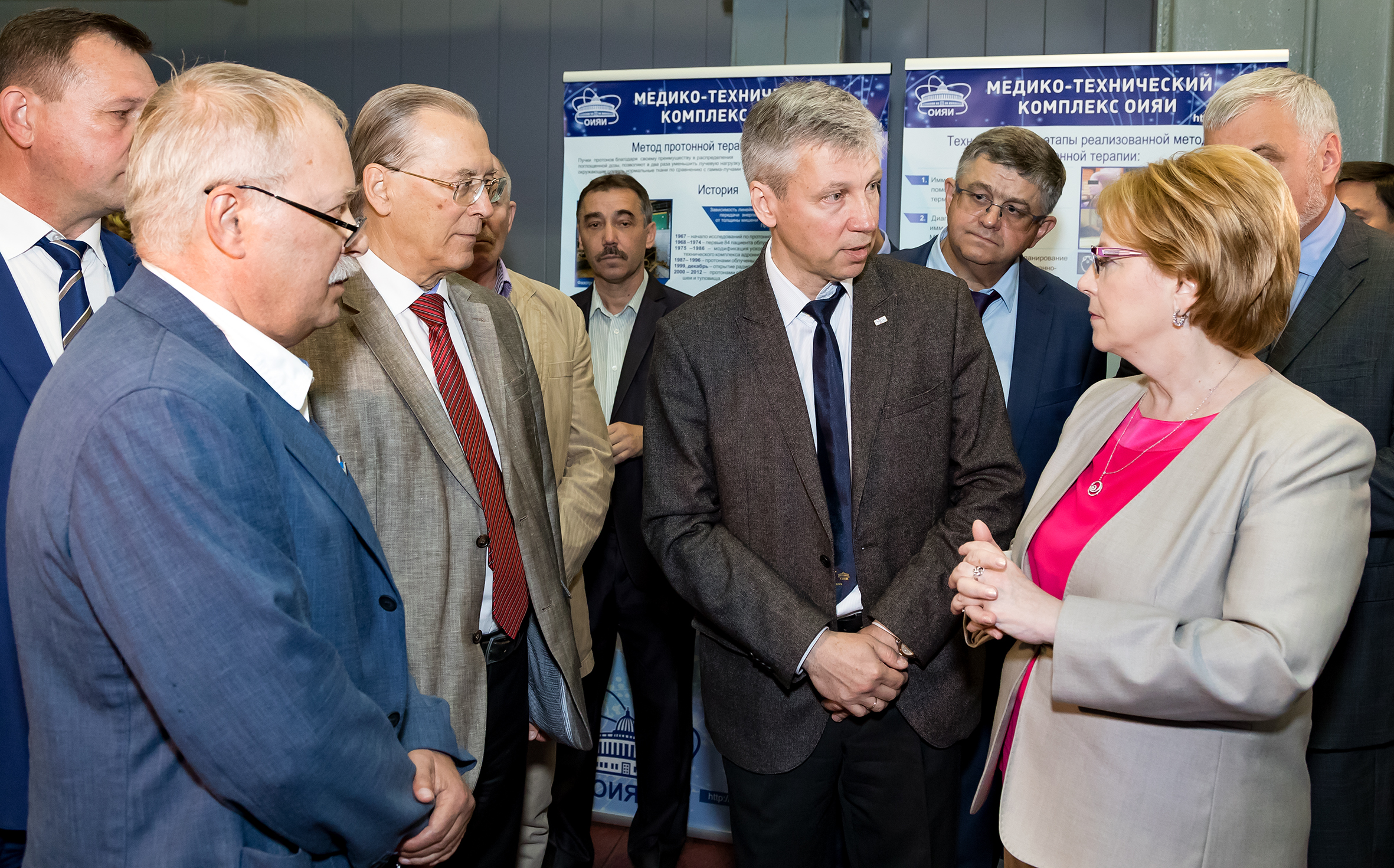 В ходе встречи с Министром Объединенный институт представил предложение существенно расширить использование своих наработок в области протонной терапии и построить в Дубне специализированный медицинский центр протонной терапии. Строительство такого центра позволит оказывать медицинскую помощь большому количеству пациентов и значительно расширить применение опыта и технологий МТК, возможности которого ограничены и позволяют принимать только около 100 пациентов в год.