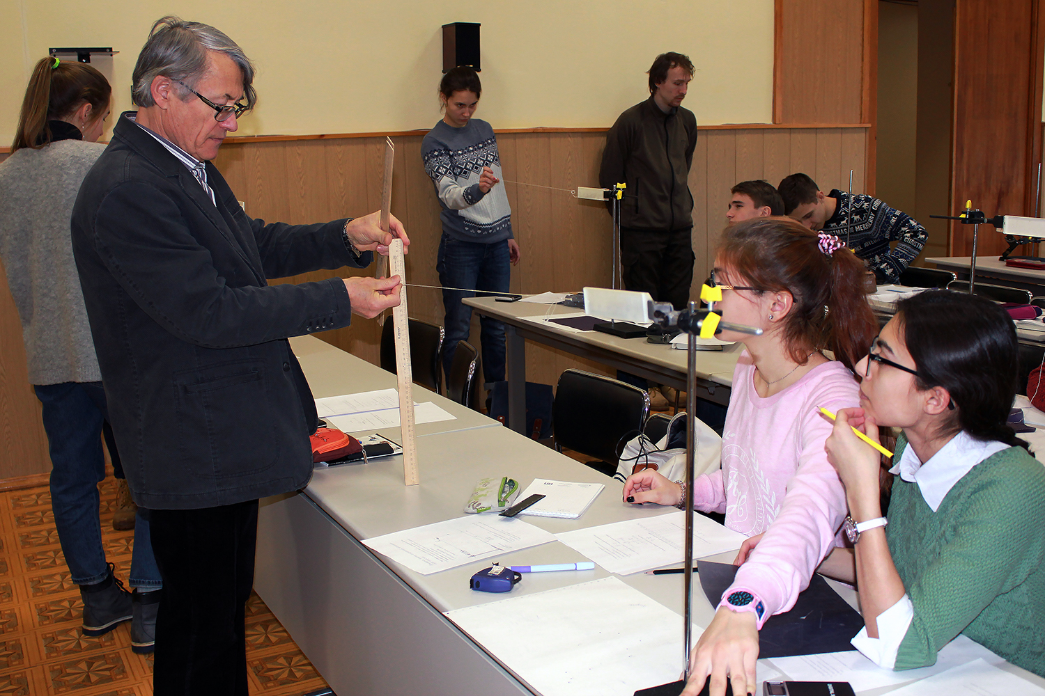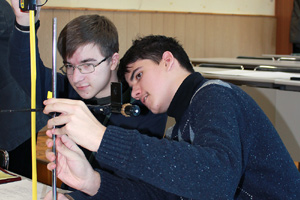 Head of the JINR UC Interschool Physics and Mathematics Open Classroom I.Lomachenkov together with his assistant D.Kozhevnikov prepared a number of laboratory works on mechanics and kinematics for the school students.