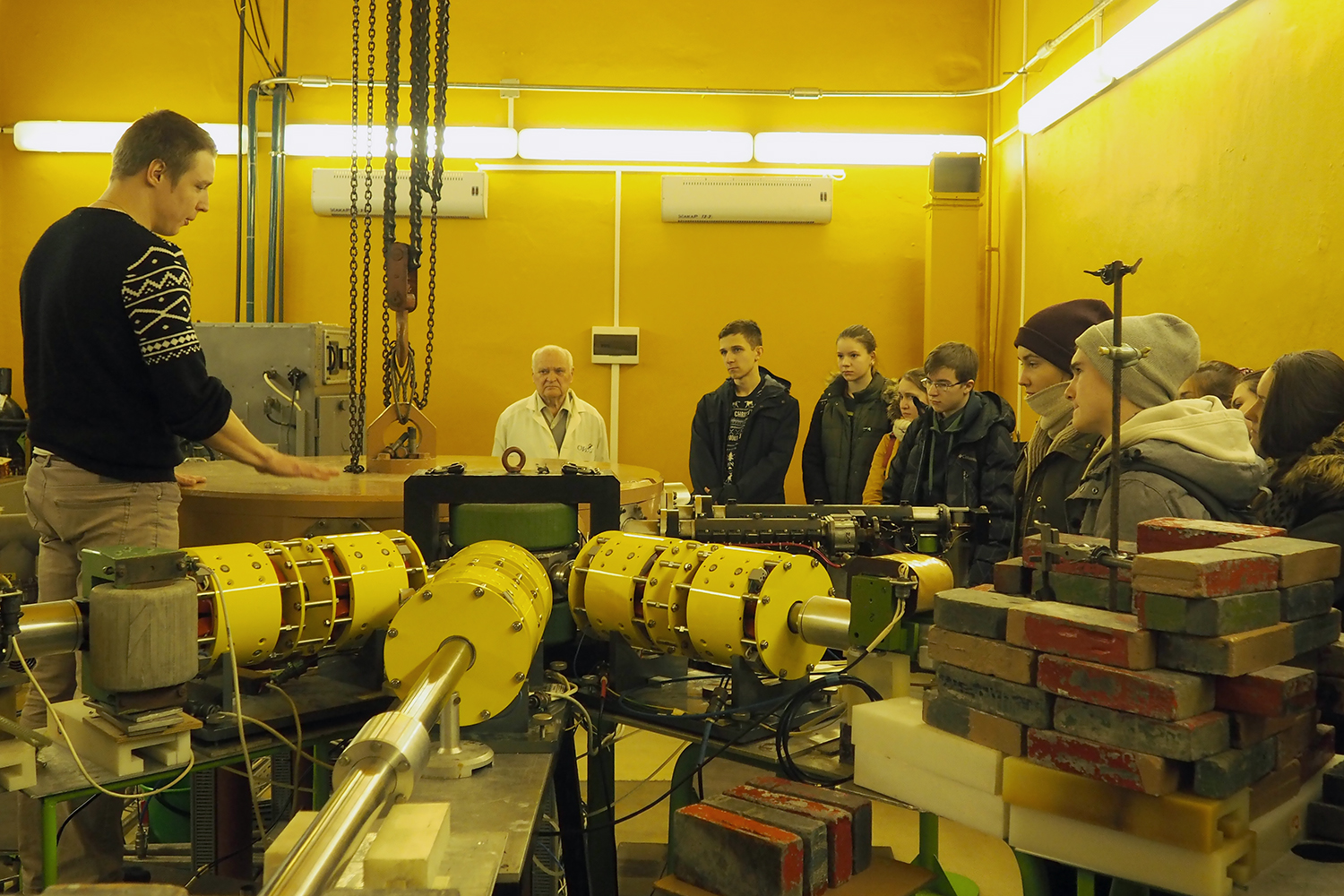 FLNR senior researcher A.Artyukh and engineer V.Semin showed the IC-100 and MT-25 accelerators to the students.