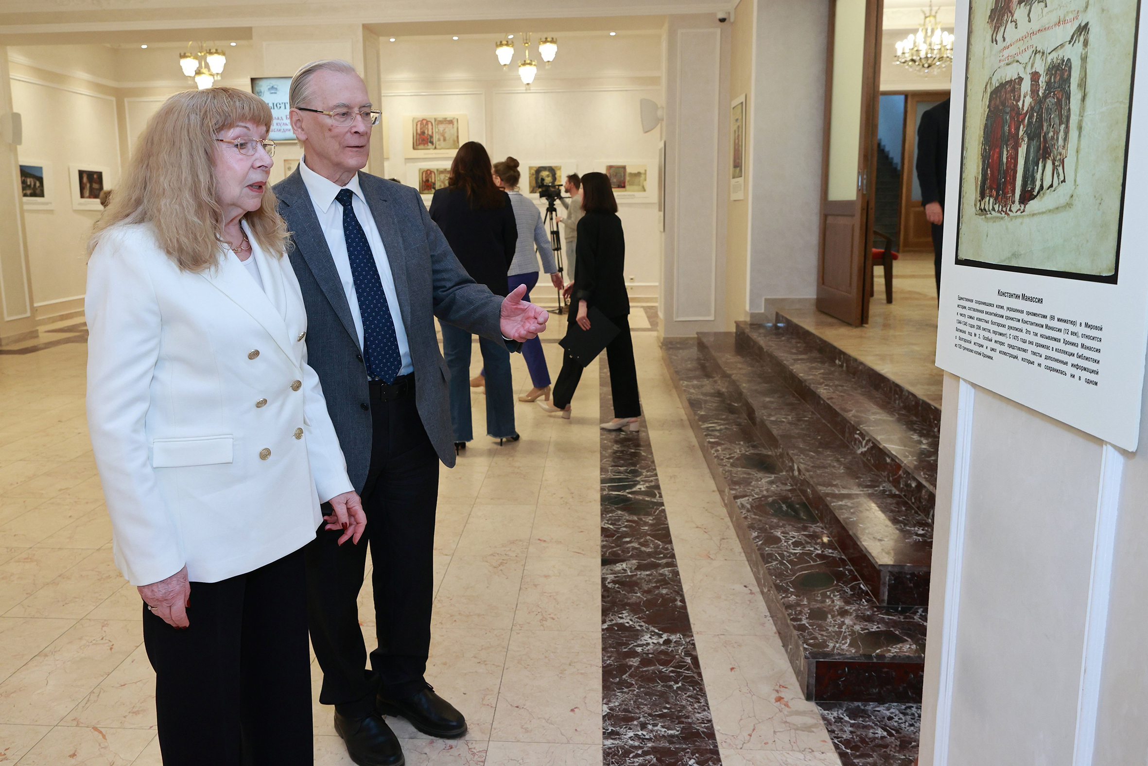 Grigory Trubnikov reminded that it was already becoming a good tradition to hold joint events with the Bulgarian Cultural Institute. In 2021, the Year of Bulgaria was celebrated at JINR, as part of which a number of exhibitions took place at JINR. “Dubna and Bulgaria, as one of the Member States and founding states of our Institute, show together a very good example. Even in difficult times, it is possible to maintain and strengthen partnership, build scientific and cultural bridges,” the JINR Director expressed his confidence. He highlighted that it was extremely important for each state to protect its language, alphabet, history, and religion. “In Bulgaria, people take care of their language, their alphabet, their history,” Grigory Trubnikov said.
