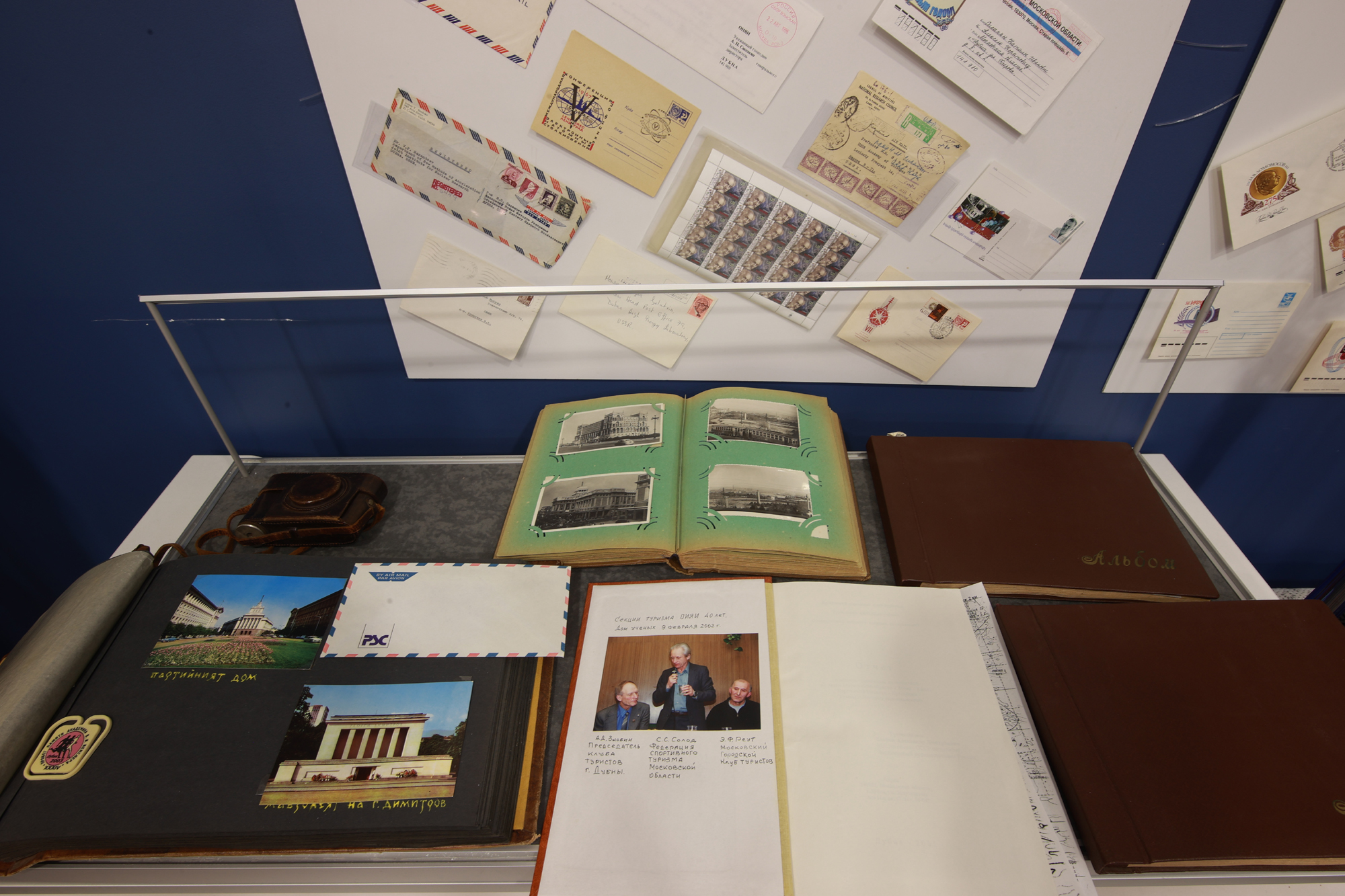 The main sections of the exhibition are workspace of a JINR employee, office and computer equipment, ‘handmade’ drawings, experimental science, documents of researchers, conferences and seminars, leisure time of researchers, ‘JINR Horizons in Philately’… and even ‘Time forward – Time back!’ So, the organizers managed to present the everyday life of JINR in all its diversity.