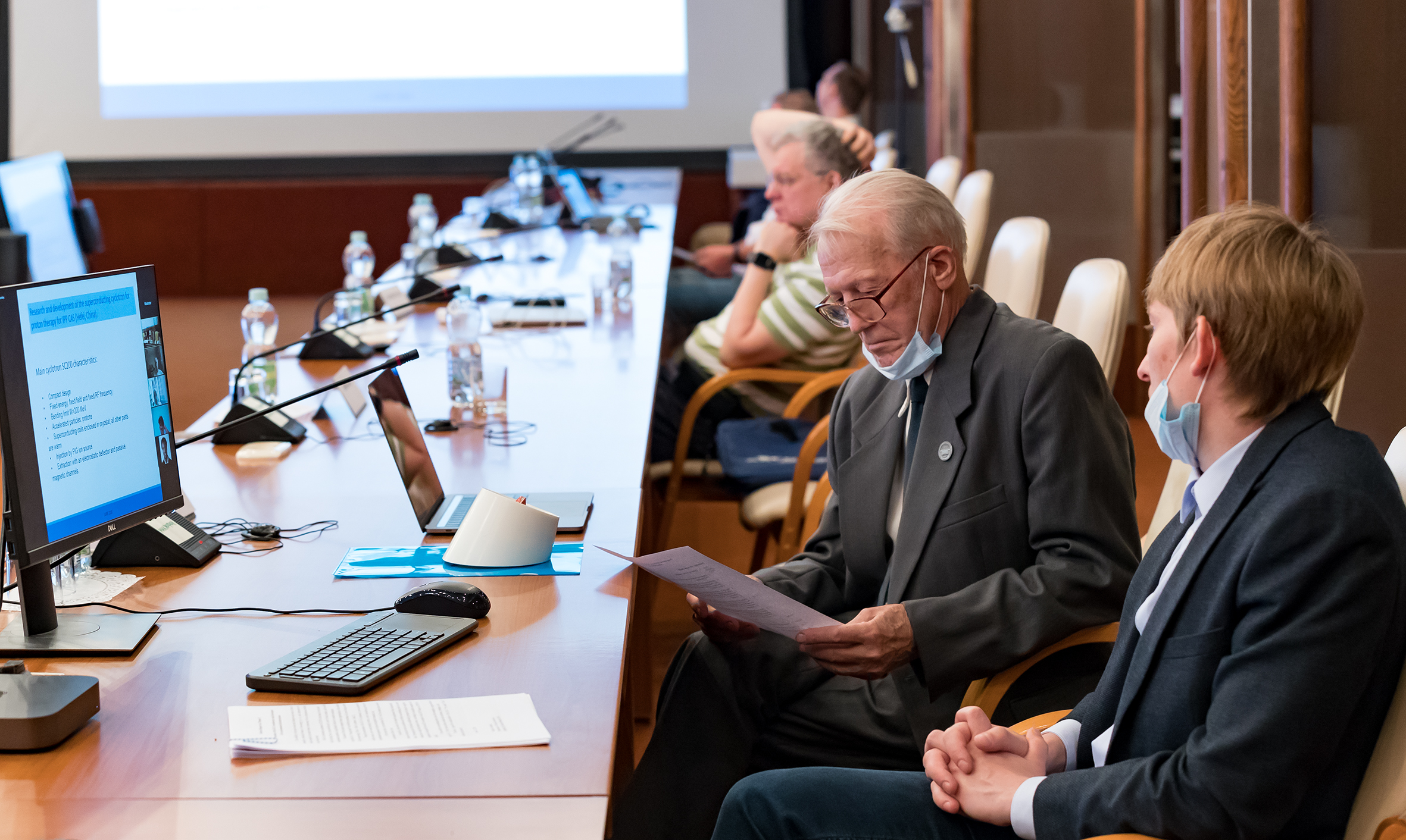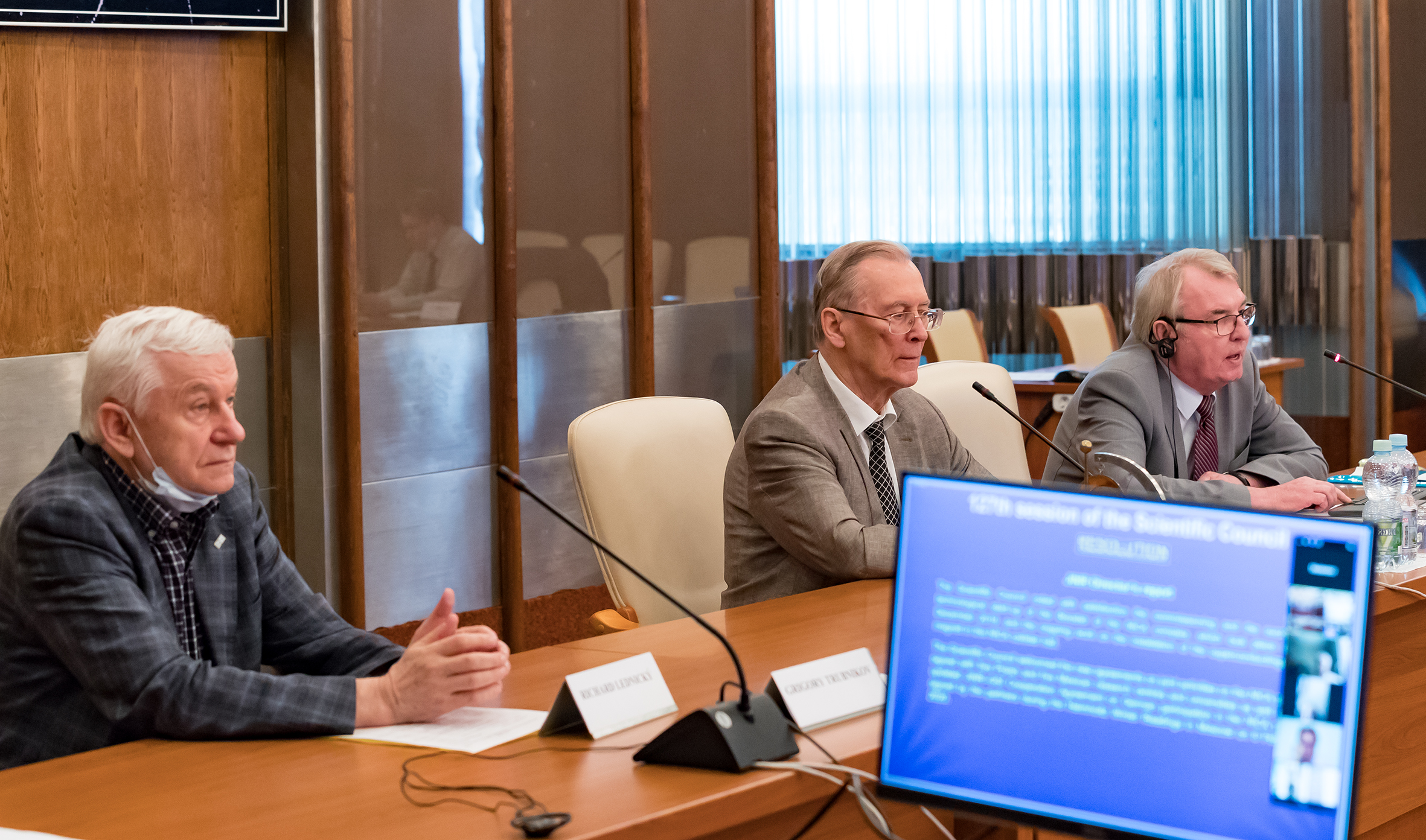 JINR Vice-Director S. N. Dmitriev continued the meeting with information on the Resolution of the 127th session of the JINR Scientific Council (February 2020) and on the decisions of the JINR Committee of Plenipotentiaries (June 2020). He commented on the milestones of the meeting for the JINR media: