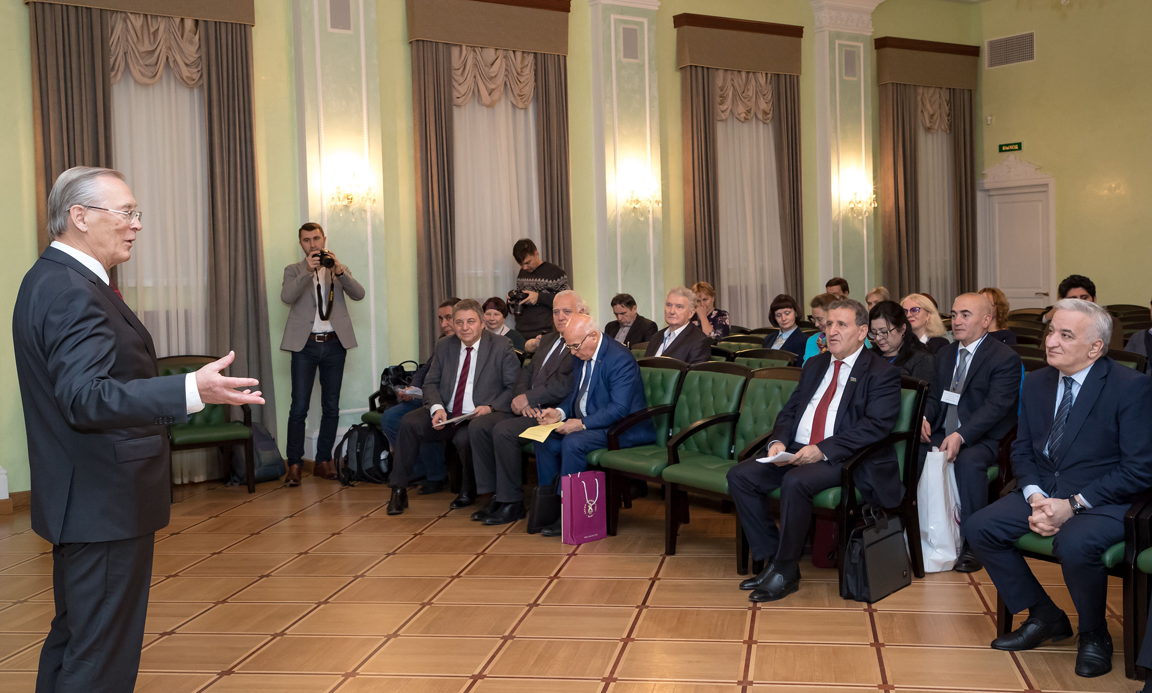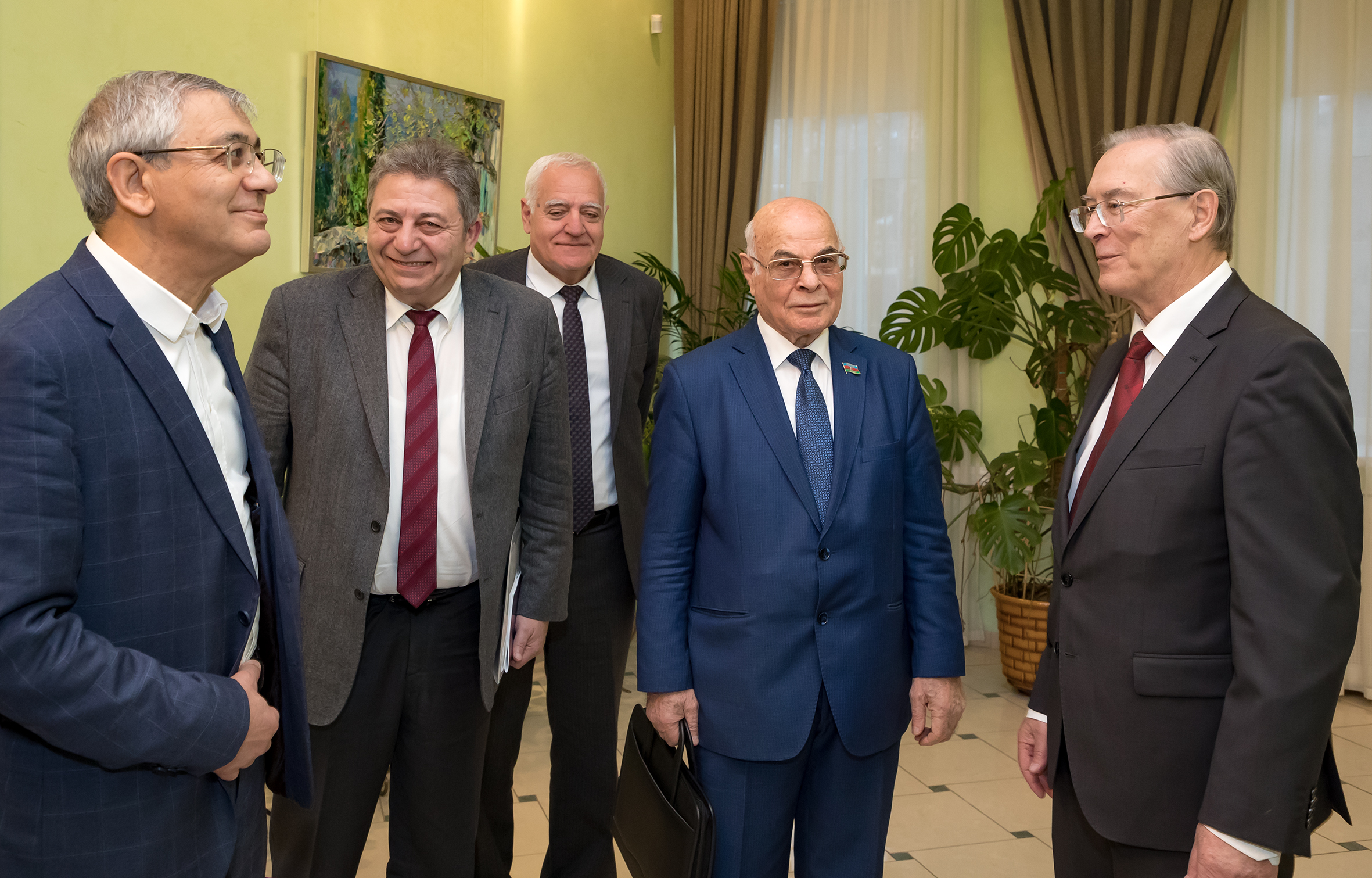 Перед открытием семинара состоялась официальная встреча с руководством ОИЯИ. Во встрече также приняли участие член-корреспондент НАНА Намик Джалилов, Директор Шемахинской астрофизической обсерватории имени Насреддина Туси НАНА, доктор технических наук Агаджан Абиев, профессор Национальной Академии Авиации, профессор Гамлет Исаханлы, Председатель Совета Директоров Университета Хазар и Рашад Меджидов, главный редактор Газеты «525». Делегацию тепло приветствовал директор ОИЯИ академик РАН В.А. Матвеев. Со стороны ОИЯИ во встрече участвовали вице-директор М.Г. Иткис, главный ученый секретарь А.С. Сорин, начальник Отдела международных связей Д.В. Каманин и начальник Управления-социальной инфраструктуры А.В. Тамонов, главный организатор дубненской части семинара. В своем вступительном слове академик Иса Габибейли передал приветствие от президента НАНА Ализаде Акифа Агамехти оглы и выразил уверенность, что проводимая конференция будет полезна специалистам как в технических, так и гуманитарных сферах. Представители ОИЯИ поддержали этот тезис, добавив, что подобное мероприятие дает возможность выйти за рамки привычного образа мысли и расширить сферы исследований.