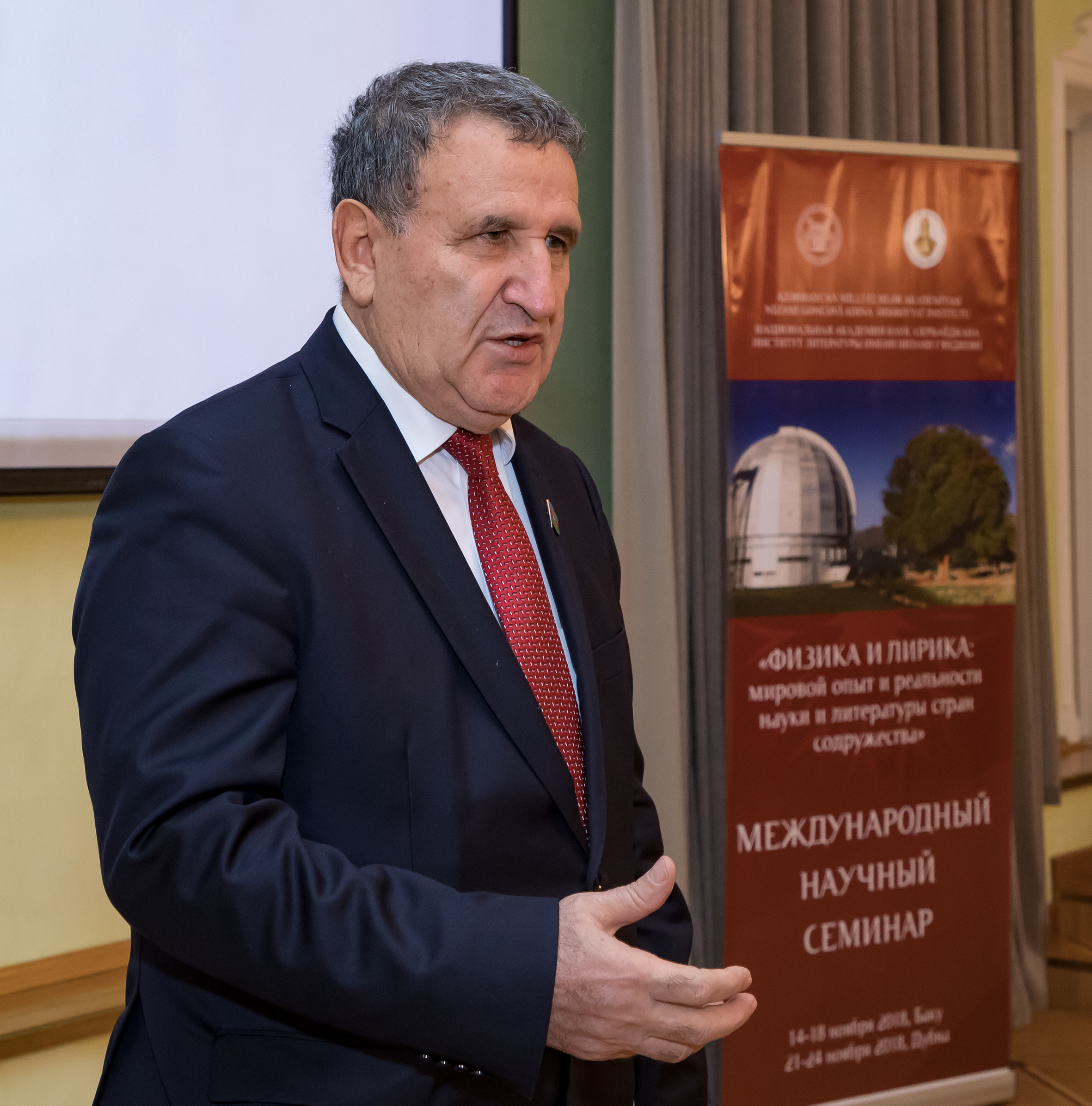 В.А. Матвеев и И. Габибейли открыли работу семинара в Доме ученых ОИЯИ своими приветственными выступлениями. В.А. Матвеев представил обзорный доклад об истории и настоящем дне ОИЯИ, его основных направлениях исследований ОИЯИ и флагманских проектах. И. Габибейли в своем выступление подчеркнул взаимосвязь науки и литературы, которая прослеживается еще с античных времен, а также отметил, что великие ученые, такие как Л. Ландау и А. Эйнштейн считали, что без знания литературы и искусства не может быть настоящего ученого. Далее слово было предоставлено Н. Мамедову, который в своем докладе рассматривал роль симметрии в физических и гуманитарных науках. В первый день семинара также выступили г.н.с. ЛНФ ОИЯИ профессор Е.П. Шабалин, председатель Совета директоров университета Хазар Г. Исаханлы, доцент кафедры языков стран Ближнего и Среднего Востока МГИМО А. Багиров, азербайджанская врач и поэтесса А. Шыхлы, зав. Отдела поэзии издательства «Художественная литература» Ю. Лапин, н.с. Института всеобщей истории РАН Е. Прусская.