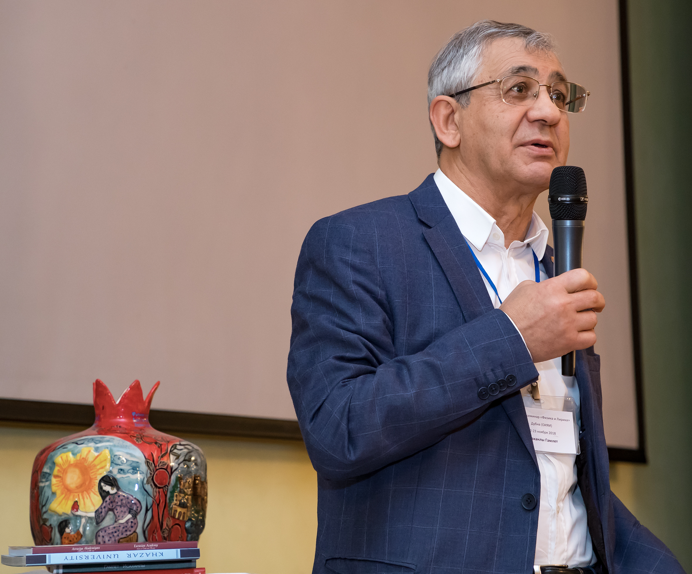 Программу докладов второго дня мероприятия открыл начальник Отдела международных связей ОИЯИ Д.В. Каманин, представивший аудитории Объединенный институт с точки международного сотрудничества. Далее свои доклады по тематике семинара представили профессор Национальной авиационной академии А. Агаджан, член-корреспондент НАНА Т. Мустафаев, директор Шемахинской обсерватории Н. Джалилов, сотрудник Центрального ботанического сада НАНА С. Гараев, заведующий лабораторией Института физики НАНА И. Насиров, инженер ОМС ОИЯИ Е. Базанова, заместитель директора ДК «Мир» ОИЯИ Л. Орелович, с.н.с. ЛНФ С. Борзаков, советник дирекции ОИЯИ поэт и переводчик Г. Варденга.