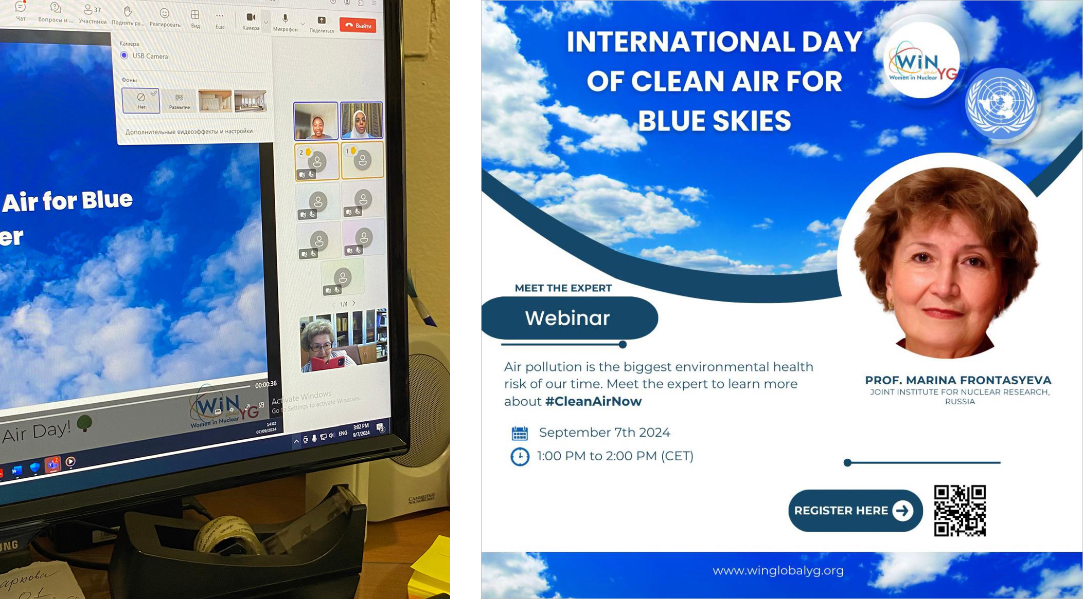 This year, on 7 September, a webinar dedicated to the International Day of Clean Air for Blue Skies took place as part of the United Nations Environment Programme (UNEP). Advisor to the Directorate of the Laboratory of Neutron Physics at JINR Marina Frontasyeva spoke at the online event as an invited expert, delivering a report on the UN ICP Vegetation and its promotion to Asia and the Pacific Coast countries. The webinar, organized by the international community of women in science, Women in Nuclear Global Young Generation (WiNYG), gathered a large number of participants, demonstrating a universal interest in preserving the environment.