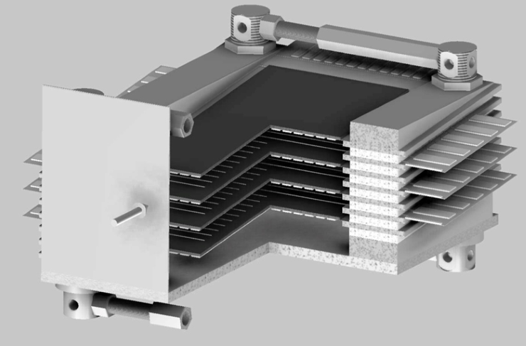 According to the developers, such an engineering solution increases the efficiency of neutron registration thanks to the possibility to decrease the angle of neutron incidence. “It is practically impossible to make an angle of less than 5 degrees in the designs of our Western partners due to the use of a relatively thick substrate lying freely, ensuring high flatness of which is impossible over a large area. In our case, when using foil or film stretched into a flat surface, this angle may be 2 degrees and even less. Based on the calculations, it increases the efficiency of registration of thermal neutrons with a wave length of 1,8 angstrom up to 67 per cent,” Alexander Kolesnikov noted. The use of well-studied at DLNP JINR narrow-band chambers in the construction of the Multi-foil detector provides high loading capacity, high space and time resolution.