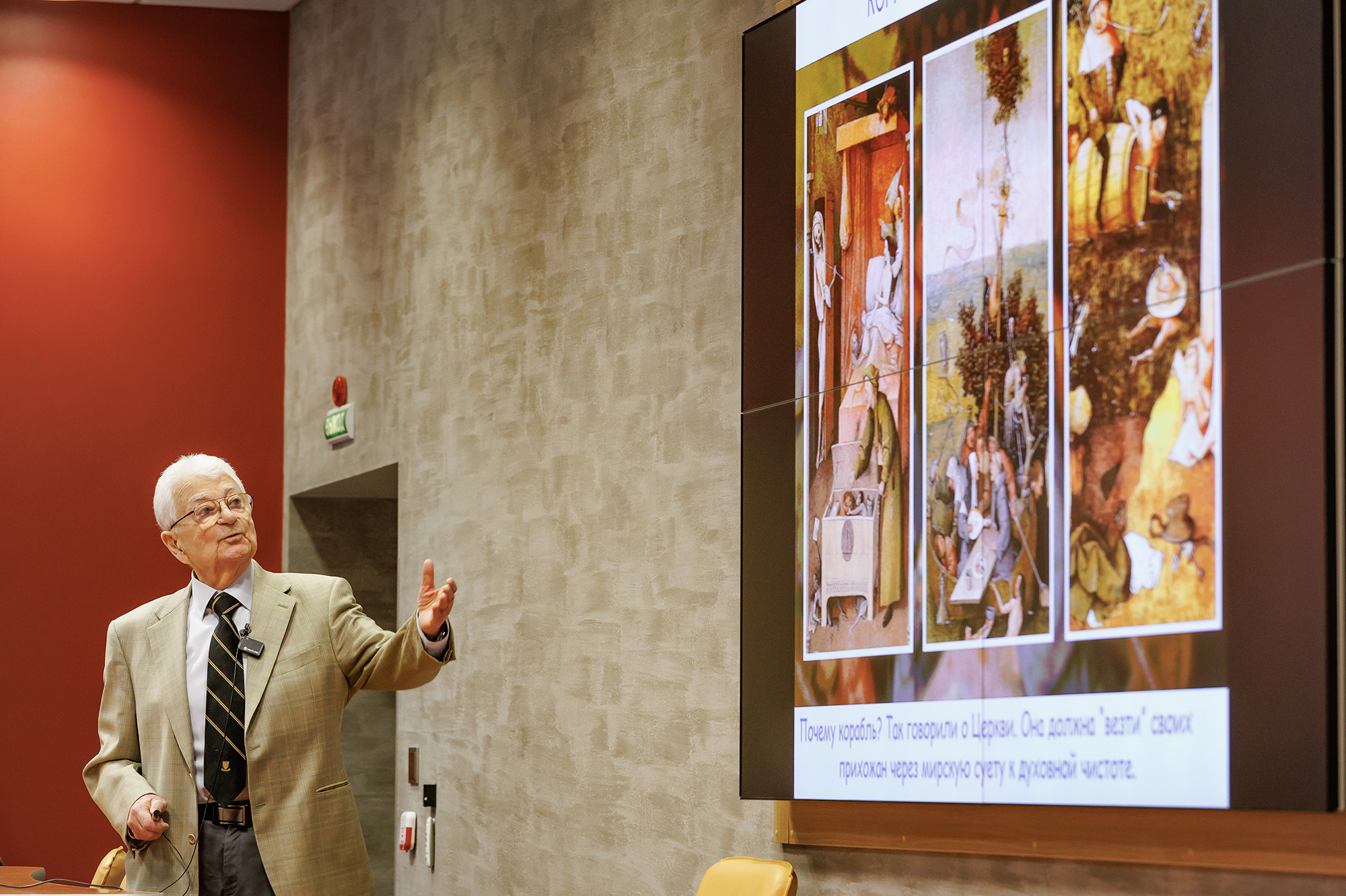 Yuri Oganessian gave a lecture about Pieter Bruegel and the era in which the Flemish artist lived and worked. “This brilliant Dutchman had a significant influence on the Northern Renaissance art. He is rightfully considered the founder of the genre of peasant painting. He primarily portrayed the everyday life of the peasant society, which earned him the nickname “peasant Bruegel”. Pieter Brueghel’s works celebrate the inseparable connection between humans and nature, showing us that every moment of life is an invaluable gift from God,” Yuri Oganessian emphasised.