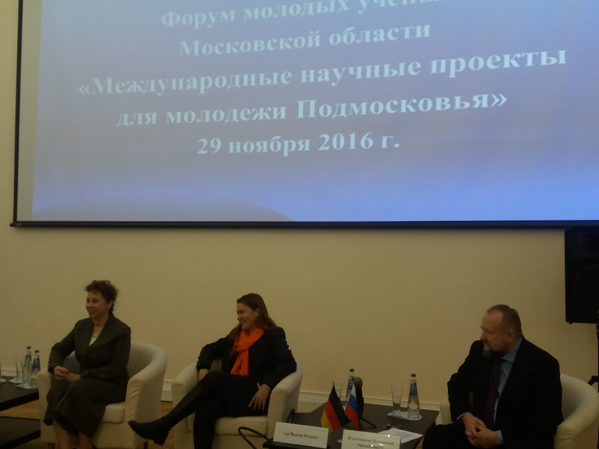 В рамках форума прошла встреча с новым руководителем Московского представительства немецкого научно-исследовательского сообщества по России и странам СНГ (DFG) госпожой Вилма Ретхаге. Г-жой Вилма Ретхаге были представлены основные направления деятельности сообщества. Расходная часть бюджета DFG ,в основном, складывается из трех программ: индивидуальные гранты (37%), приоритетные программы (16%), и центры научного сотрудничества (27%). Существует также программа поддержки молодых исследователей. Были представлены программы с модульной структурой: