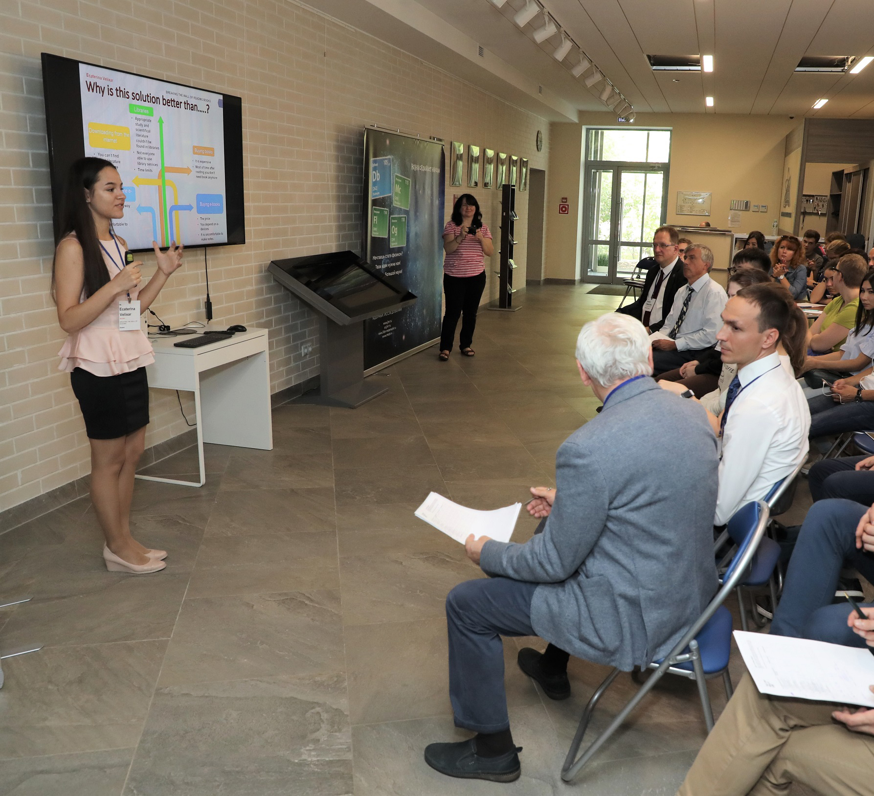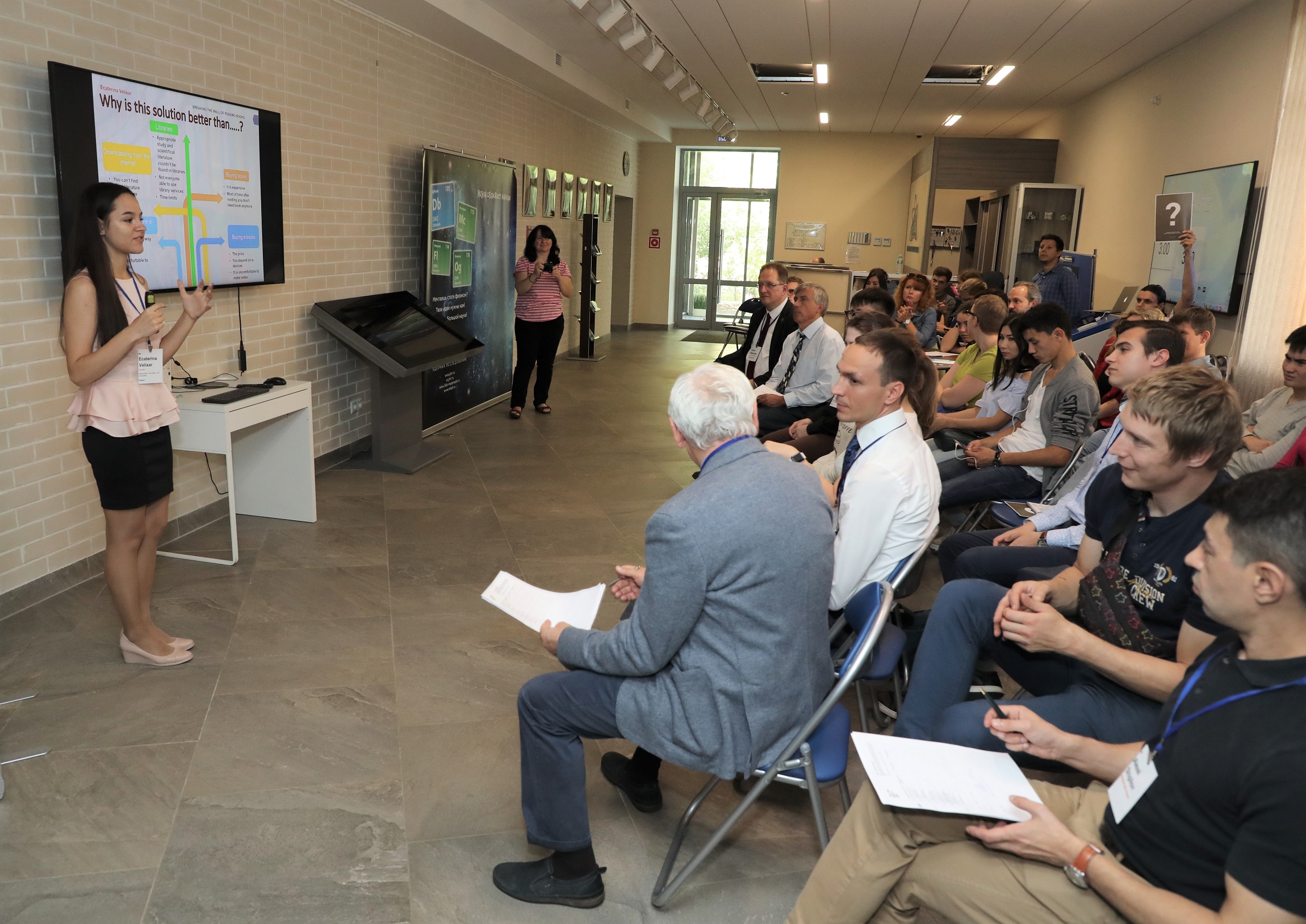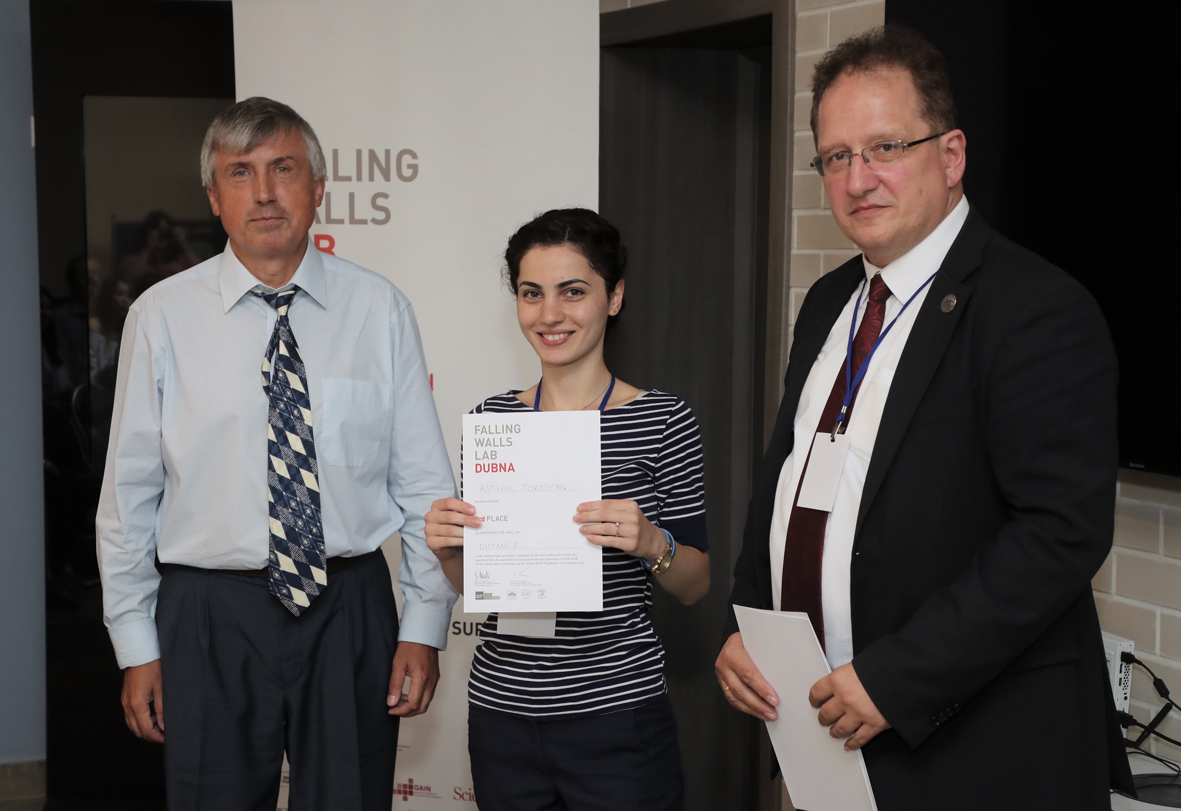 Участники представили свои идеи по решению самых разнообразных проблем современности, таких как помощь больным раком, коммуникация в мировом научном сообществе, использование литий-ионных батарей и сохранение сельскохозяйственного урожая без применения пестицидов. Профессиональное жюри, в состав которого вошли представители организаций – главных спонсоров конференции и филиала Объединения имени Гельмгольца в Москве, а также известные ученые из Германии и Польши, определило тройку призеров. Победителем стал аспирант Российского государственного геологоразведочного университета имении С. Орджоникидзе Батыр Овезов (Туркменистан), представивший доклад по теме сельскохозяйственных пестицидов, второе и третье место присудили молодым ученым ОИЯИ – Мейиру Ердаулетову (Казахстан, ЛНФ) и Астгик Торосян (Армения, ЛИТ).