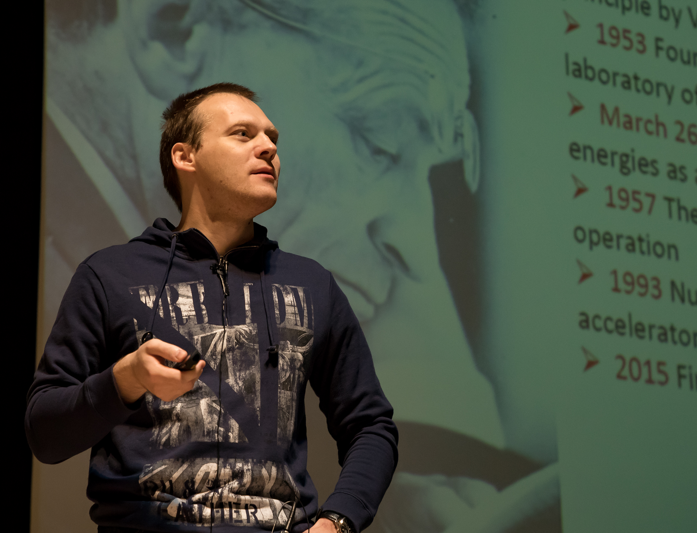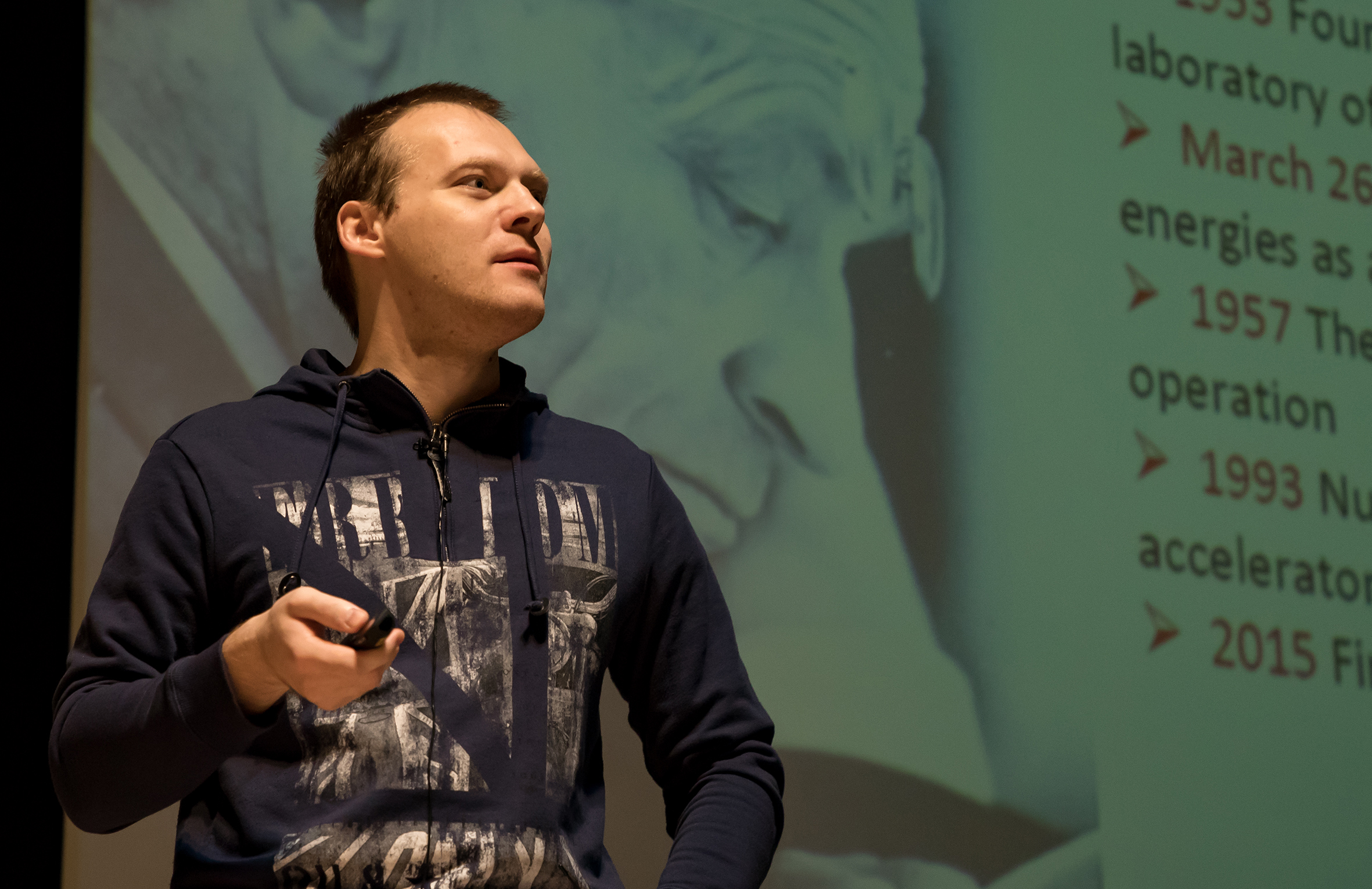 — Это мероприятие, в котором могут принять участие все желающие, – рассказал репортеру Еженедельнка ОИЯИ Крыстиан Роcлон. – Мы хотели, чтобы пришли сотрудники из нашей и других лабораторий ОИЯИ, и, конечно, жители города. К нашему удивлению и сожалению, заявок оказалось слишком много – зарегистрировалось 230 человек. Наши организаторские ресурсы позволяют принять только 6 групп по 13 человек, то есть пришлось отбирать 80 участников. Приоритет получили иногородние и представители других институтов – например, МИФИ, МГУ. Кроме этого, двумя днями раньше в ЛФВЭ проходило большое коллаборационное совещание по проектам BM@N и MPD, и несколько участников остались, чтобы посмотреть, как молодежь ОИЯИ рассказывает про реализацию проекта NICA и принять участие в экскурсиях. По этой причине мы выбрали для лекций английский язык.
