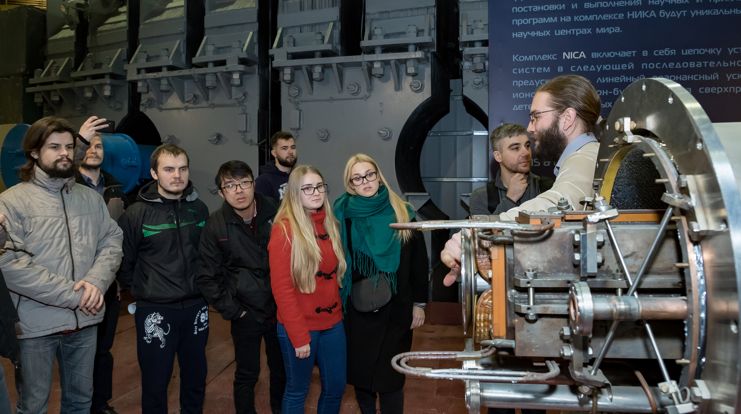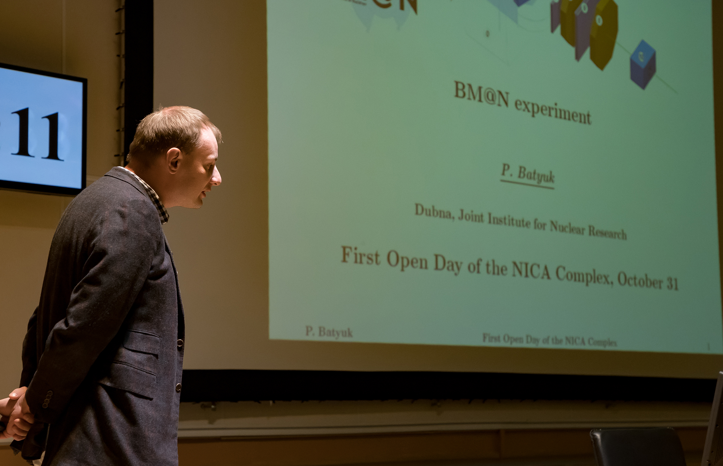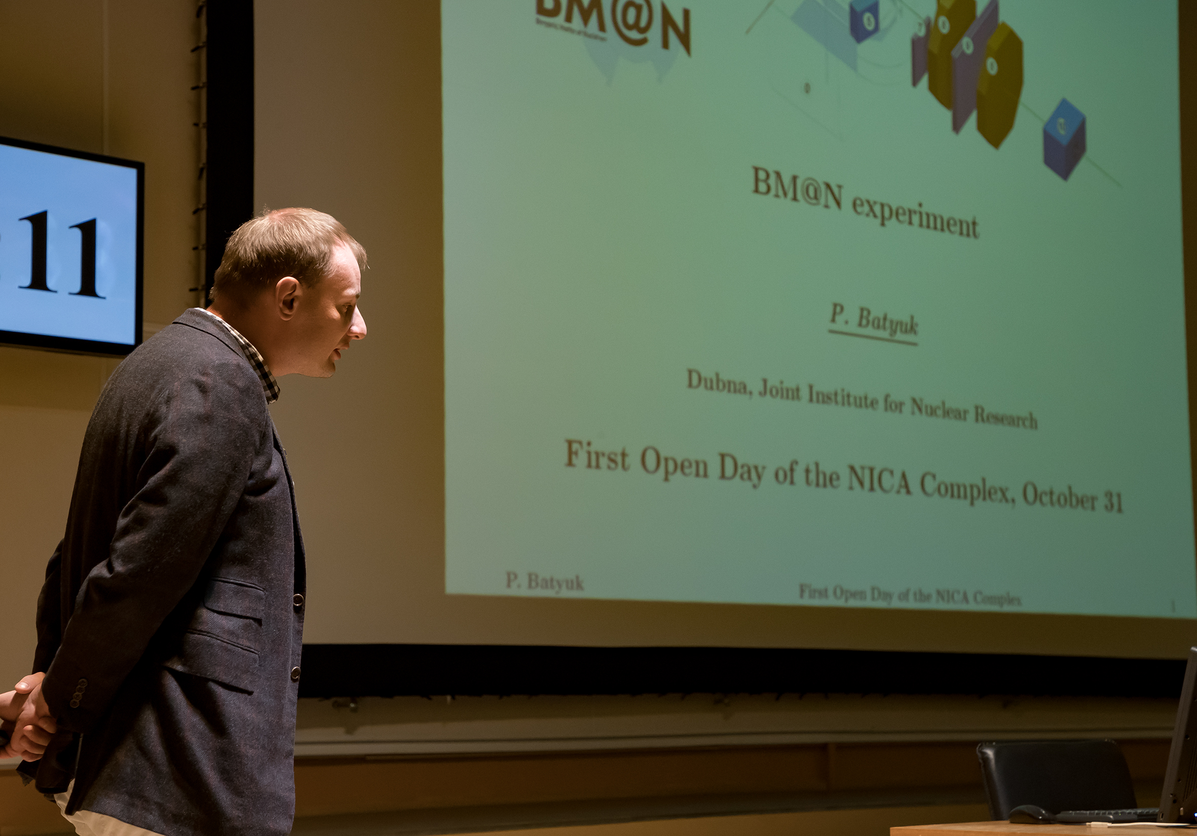 31 октября 2018 года в Лаборатории физики высоких энергий им. В.И. Векслера и А.М. Балдина ОИЯИ прошел первый день открытых дверей комплекса NICA. Мероприятие, собравшее 80 посетителей, открыл председатель Совета молодых ученых и специалистов ЛФВЭ ОИЯИ Крыстиан Рослон. О ключевых элементах и подсистемах строящегося комплекса NICA, а также о его будущих экспериментах собравшейся аудитории рассказали молодые сотрудники ЛВФЭ: Алексей Апарин, Михаил Шандов, Александр Рамздорф, Павел Батюк, Николай Гераксиев и Грибовский Александр. Мероприятие продолжилось экскурсиями по строящемуся комплексу NICA. Гости смогли ознакомиться с фабрикой сверхпроводящих магнитов, подробно рассмотреть экспериментальную установку BM@N с мишенью на выведенном пучке Нуклотрона, пройтись по строительной площадке комплекса, обойти строящийся ускорительный комплекс и послушать о криогенных системах.