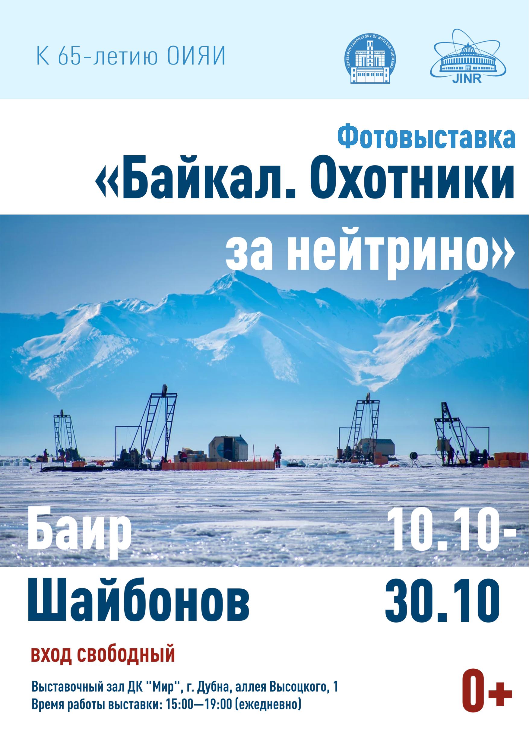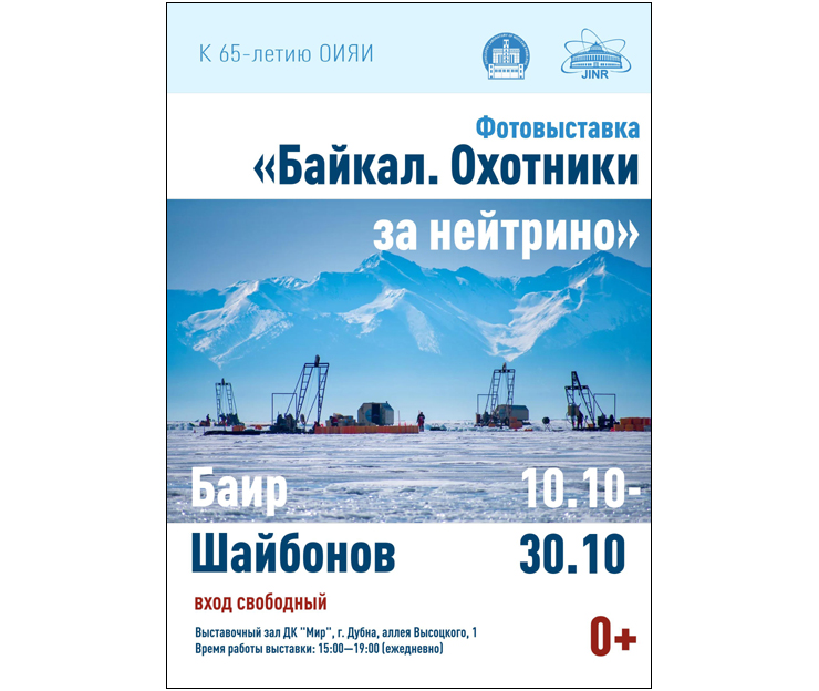 С 10 по 30 октября в Выставочном зале Дома культуры «Мир» ОИЯИ будет проходить фотовыставка «Байкал. Охотники за нейтрино», приуроченная к 65-летию ОИЯИ.
