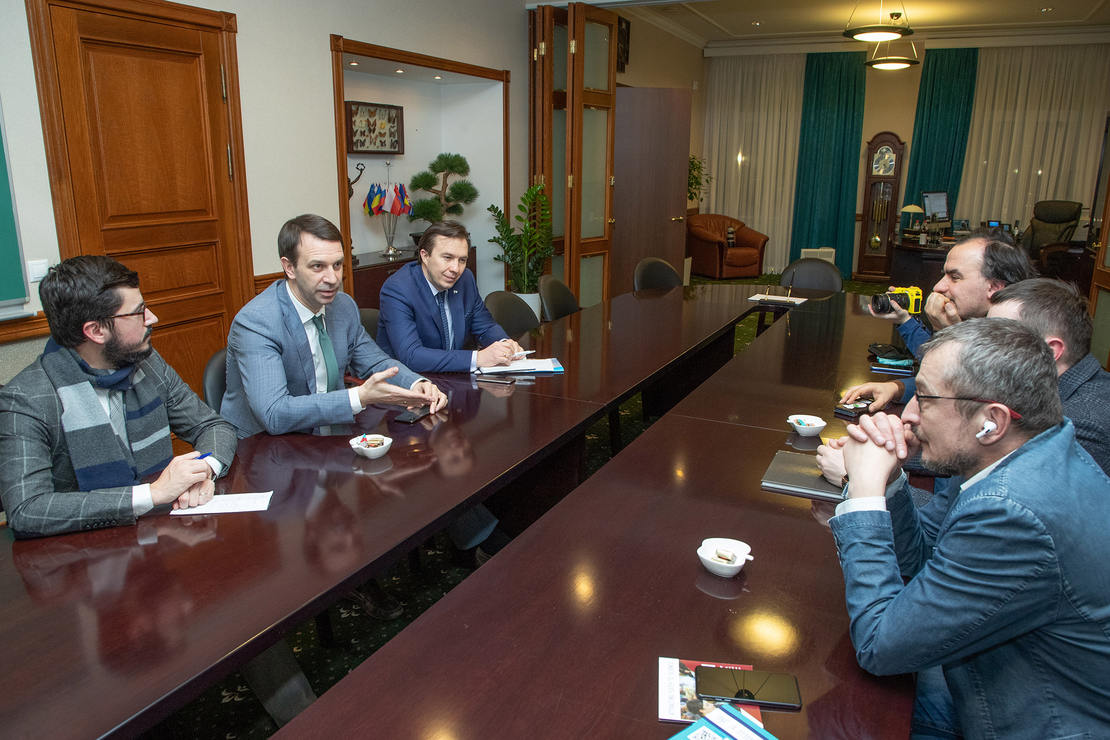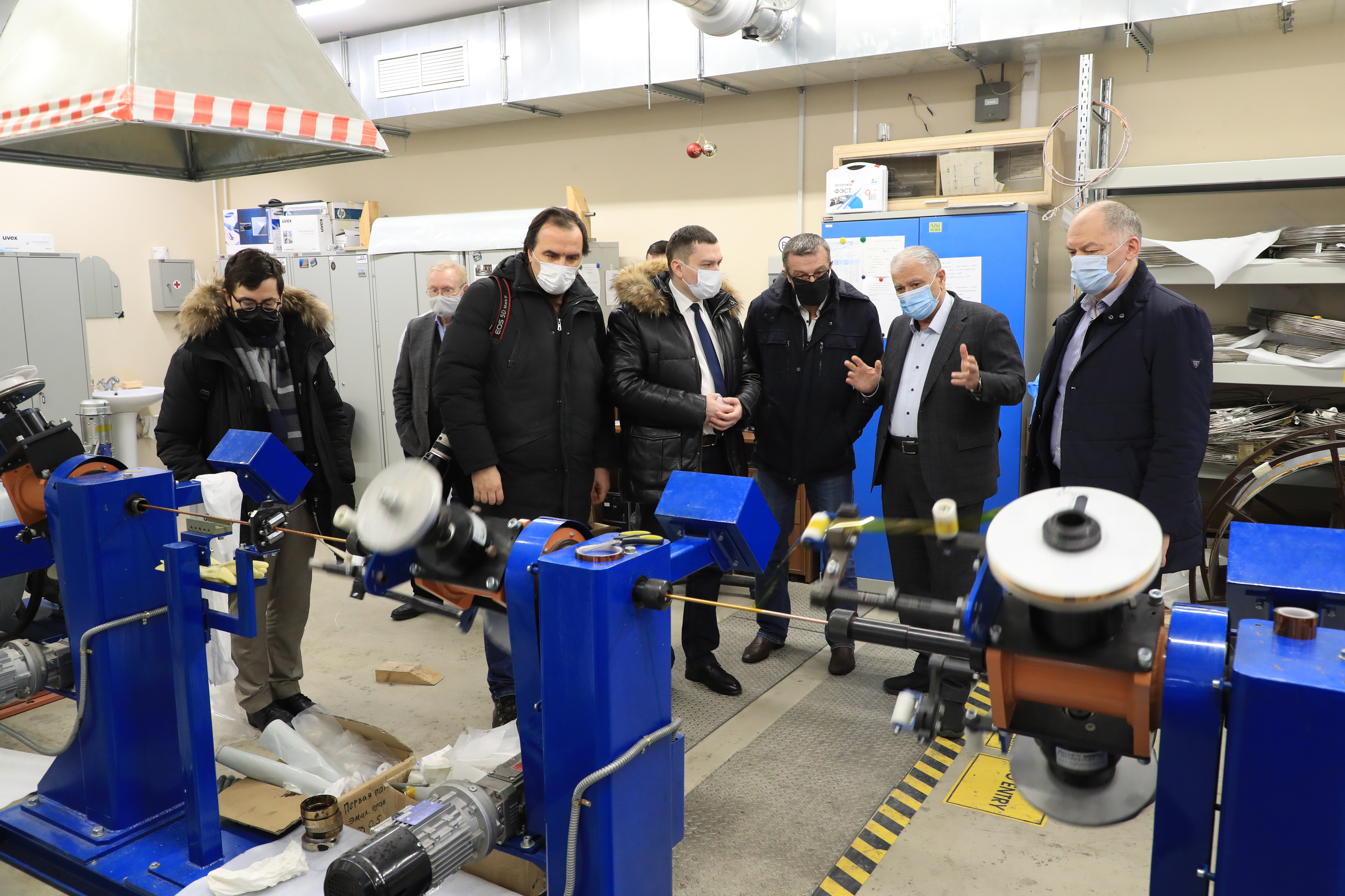 On 22 January, Acting Rector of Tomsk Polytechnic University A. A. Yakovlev and representatives of the Competence Centre of Technologies of New and Mobile Energy Sources of the National Technological Initiative (CC NTI) based at the Institute of Problems of Chemical Physics of RAS in Chernogolovka visited JINR. JINR Director G. V. Trubnikov welcomed the delegation. The guests visited the Laboratory of High Energy Physics where they were introduced to the NICA complex construction, visited the Laboratory of Information Technologies, met with leading researchers and specialists of the Institute. UC Director S. Z. Pakuliak and A. S. Zhemchugov presented the main development fields of the Institute’s educational programme.