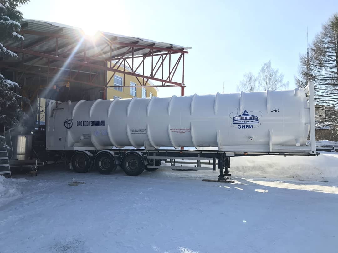 On 18 February, a specialized cryogenic transport tank for liquid helium was delivered to VBLHEP JINR. This unique equipment is one of the main elements of the NICA accelerator infrastructure and has been delivered under a contract between JINR and the R&D company “Geliymash”.