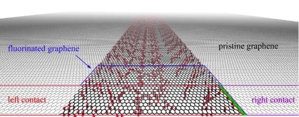 (4) An important way of changing the properties of graphene is associated with its functionalization with various elements and compounds. One of the popular materials obtained in this way is partially fluorinated graphene. One of its advantages is stability and lack of degradation in air, so it can also be considered as a material for planar electronics. Thus, it is extremely important to know the regularities of electron transport at different degrees of fluorination and different methods of fluorine distribution over the graphene surface. Previous experimental studies have shown the presence of a number of features of electron transport in fluorinated graphene, namely, an increase in conductivity upon 10% fluorination and the presence of electron-hole asymmetry. We managed to explain theoretically both of these phenomena [1]. The calculation of such characteristics as the length of electron localization and characteristic temperature, which appears as a parameter in the thermoactivation law of conductivity for different fluorine concentrations and different energies, was performed. To involve real fluorine distributions in the model, a mechanism for the rapid generation of fluorinated structures was proposed , it allows taking into account the fact that in reality fluorine is not uniformly distributed, but forms chains and islands of various sizese. Calculations of the conductivity showed that taking this factor into account is necessary for the model to describe the experimental data. It was found that the electron-hole asymmetry of the characteristic temperature is explained by the asymmetry of the density of states, since the localization length on the energy scale is symmetric over a wide range of fluorine concentrations. The feature of conductivity at 10% fluorine concentration was reproduced in the calculation and turned out to be associated with a resonant increase in the localization length. Fourier analysis of the electron density distribution has illustrated that it is at a ten percent concentration that quasi-periodic electronic domains are formed, which increases the tendency to delocalize the electron and leads to a peak in conductivity. Thus, we were able to explain the experimental behavior of conductivity in fluorinated graphene, to reveal the role of fluorine ordering, and also to predict this behavior for a wide range of concentration (1-20 percent) and energy (-1.5 – 1.5 electron volts).