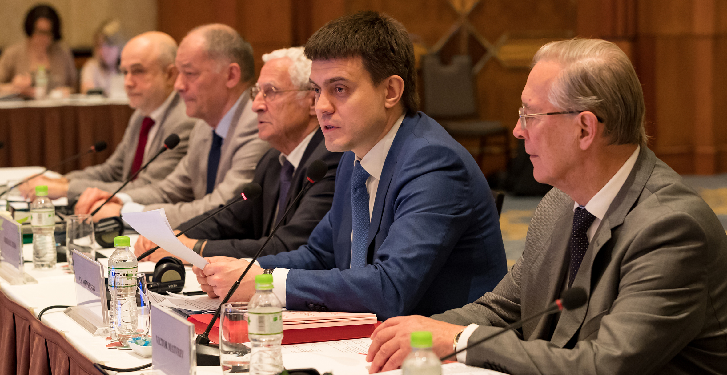 Открывая заседание, М. М. Котюков выступил с кратким словом от лица делегации России, отметив важнейшие результаты работы ОИЯИ за последние несколько лет, и выразил твердую поддержку руководства РФ и Министерства науки и высшего образования деятельности ОИЯИ по реализации амбициозных задач семилетнего плана развития Института. Одним из главных вопросов повестки дня КПП, кроме обсуждения важнейших результатов работы Института в текущем году и утверждения бюджета ОИЯИ на следующий 2020 год, было обсуждение хода работы дирекции Института и созданной ею международной рабочей группы по подготовке проекта долгосрочной программы развития ОИЯИ на период до 2030 года.