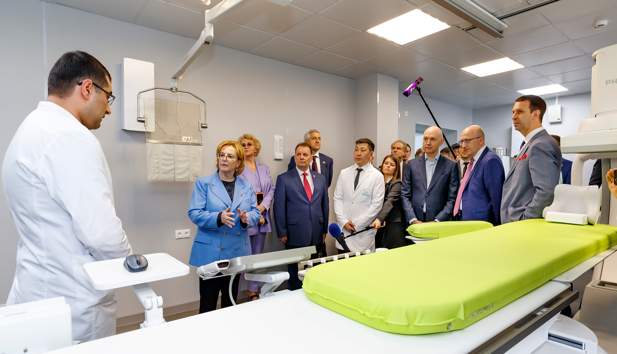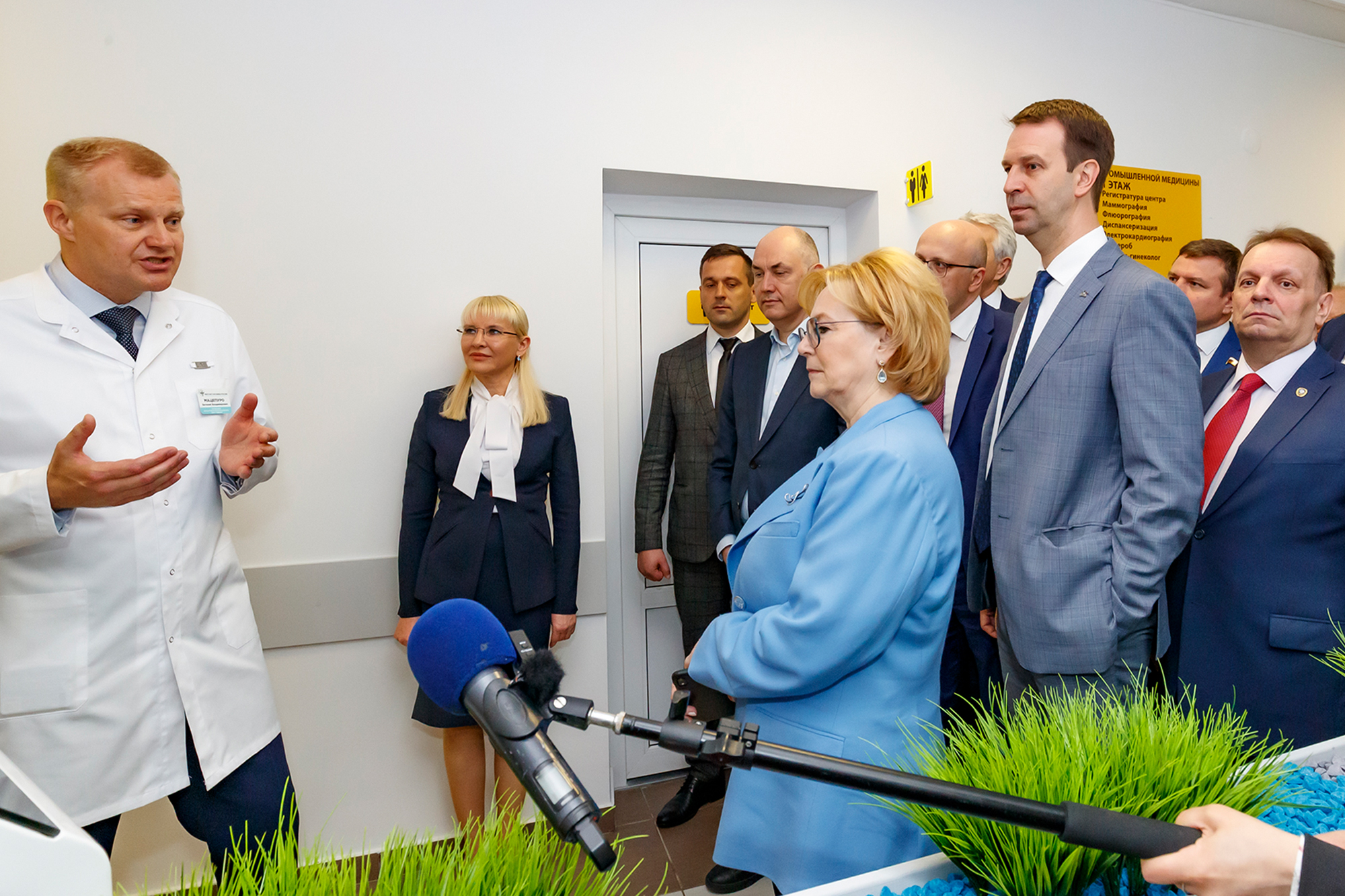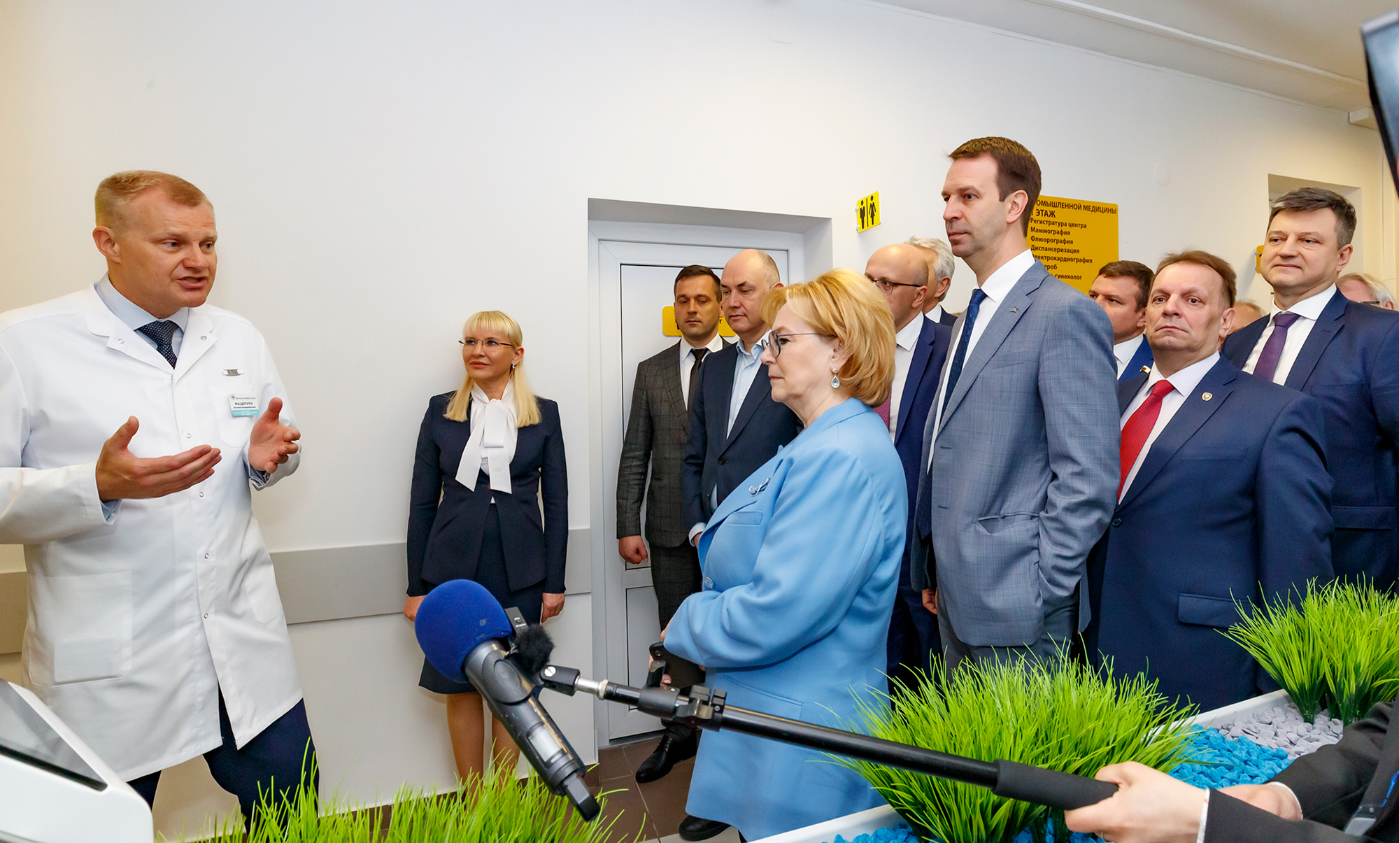 A new vascular centre, fully equipped with modern medical equipment, including an angiograph, with a complete staff, were shown to Veronika Skvortsova, as well as representatives of the Agency, who arrived in Dubna from many regions of the country. They were offered a tour of the updated facilities of Medical Unit No.9 as well.