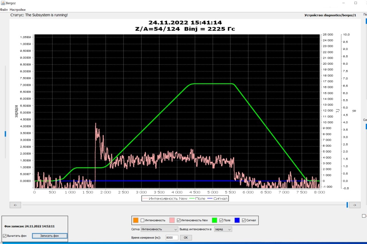 According to Deputy Head of the Accelerator Department of the Laboratory of High Energy Physics Anatoly Sidorin, during the run, specialists managed to achieve for the first time the operation of the complex of heavy ion accelerators in its entirety, including an electron-string ion source, a heavy-ion linear accelerator, the Booster, and the Nuclotron. The intensity of the xenon heavy ion beam accelerated at the Nuclotron is approximately 107 particles.