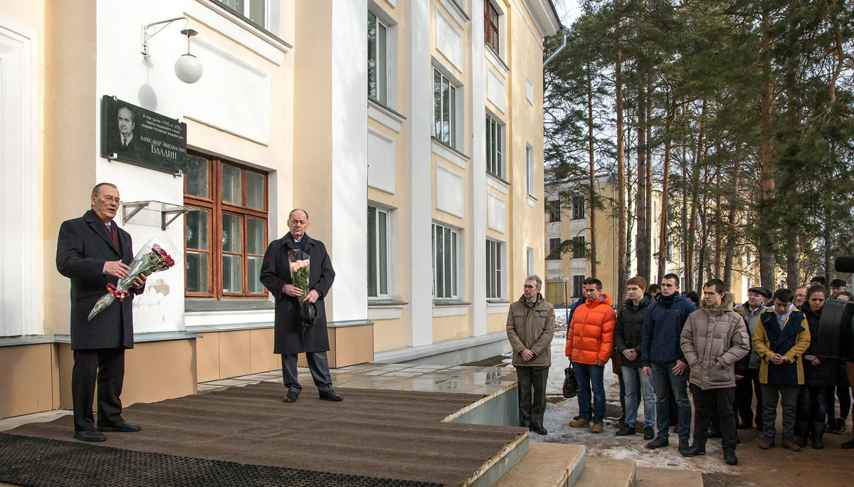 26 февраля 2016 г., в день 90-летней годовщины со дня рождения академика Александра Михайловича Балдина, сотрудники Лаборатории физики высоких энергий имени В.И.Векслера и А.М.Балдина, их коллеги из других лабораторий Института собрались на площадке перед лабораторным корпусом, чтобы возложить цветы к мемориальной доске. Юбилейный митинг открыл директор лаборатории В.Д.Кекелидзе. О большом вкладе академика А.М.Балдина в становление и развитие Объединенного института, новых направлений фундаментальных исследований говорил в своем выступлении директор ОИЯИ академик В.А.Матвеев. Лучшей памятью о выдающемся ученом, в течение почти тридцати лет руководившем Лабораторией высоких энергий, является продолжение его работ, создание нового ускорительного комплекса NICA для исследования свойств барионной материи сверхвысоких плотностей, отметил в своем выступлении директор Института.