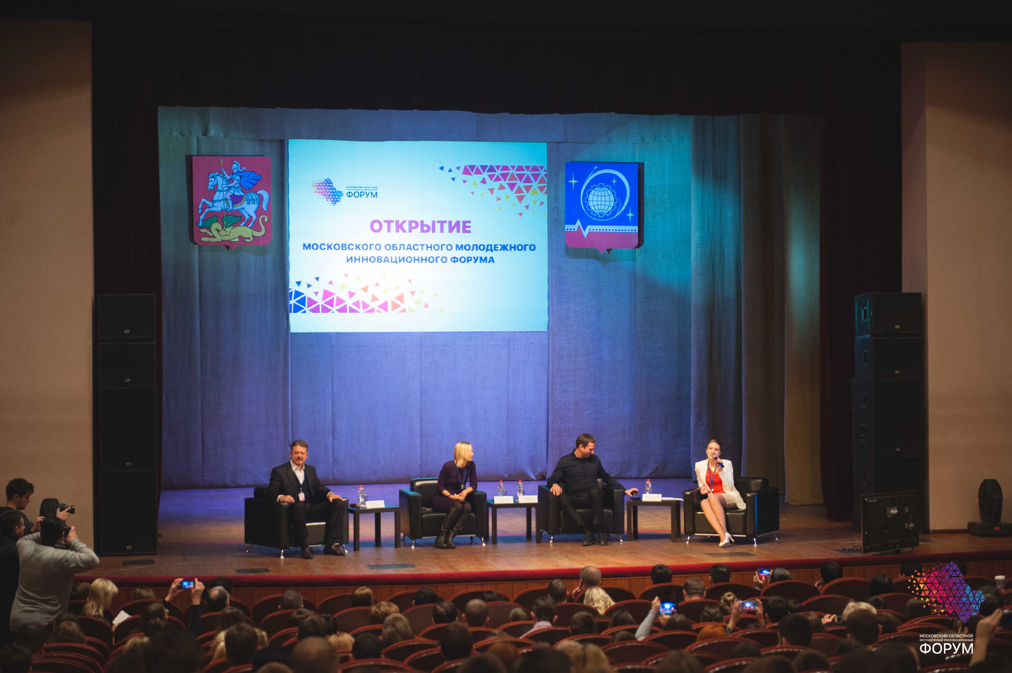 Открыли форум Денис Петрович Буцаев — заместитель Председателя Правительства Московской области, Министр инвестиций и инноваций Московской области, Ирина Плещева — начальник Главного управления социальных коммуникаций Московской области и Юрий Копцик — руководитель Администрации городского округа Королев.