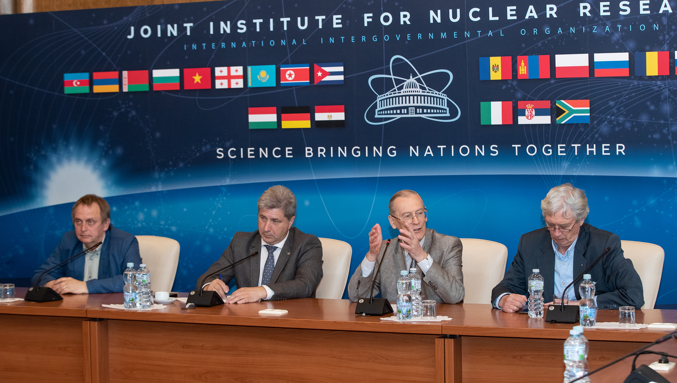 The JINR party at the round table was represented by Institute’s Scientific Leader Victor Matveev, Chief Scientific Secretary Sergey Nedelko, JINR Special Representative to Russian and International Organizations Boris Sharkov, Head of the International Cooperation Department Dmitry Kamanin, members of the Expert and Analytical Group, and interested employees.