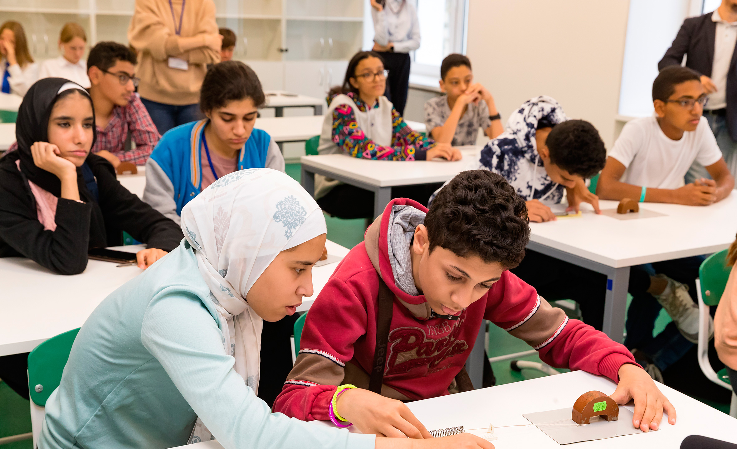On 15 September, participants of the JINR Science School for Students of the Children’s University of the Egyptian Academy of Scientific Research and Technology visited the Physics and Mathematics Lyceum named after V. G. Kadyshevsky and talked with peers from Dubna.