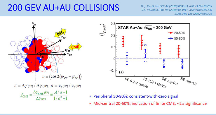 Wang Fuqiang from the Purdue University (USA) gave a report on the search for the chiral magnetic effect (CME) in relativistic collisions of heavy ions. The main task of the experimenters is to isolate the signal from the background of other processes. The background caused by collective particle flows is well studied and under control. The lack of flow is the next (and, the researchers hope, the last) problem. All indications suggest a terminal CME signal of ~10 %.