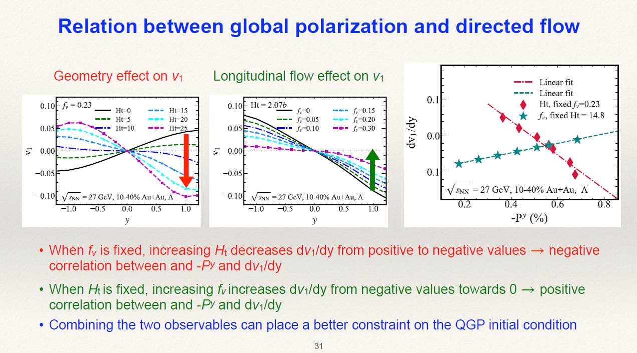 Cao Shanshan from the Central China Normal University considered in the report the relation between the polarisation of hyperons and their direct flow.