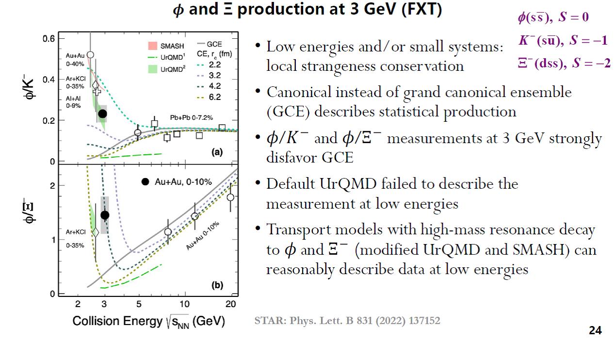 Zhu Xianglei from the Huzhou University (China) delivered the report on the systematics of the production of strange particles and showed new data from the STAR experiment on the production of ϕ-mesons. The ratios ϕ/K— and ϕ/Ξ— show a strong effect of canonical strangeness suppression.