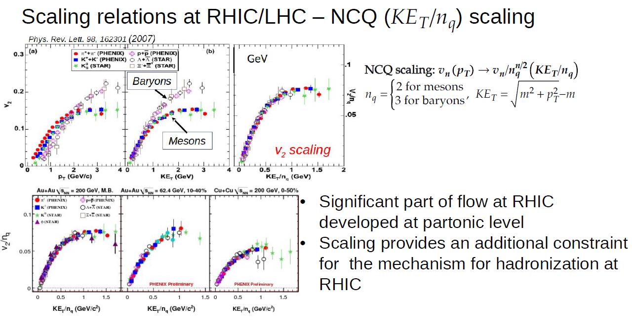 Petr Parfenov (NRNU MEPhI) reviewed the scaling properties of anisotropic flows at high baryon densities in his report. In particular, he compared the data obtained by the STAR collaboration at √s = 3 GeV and the HADES collaboration at √s = 2.4 GeV and noted the good consistency of the calculations within the JAM, UrQMD, and SMASH models with hard EOS with experimental data on proton flows. However, the models do not describe all types of particles equally well (in particular, meson flows, Λ, are described worse). He also demonstrated that scaling relations can be used to compare the results of the BM@N and MPD Experiments with existing experimental data and further constrain the models.