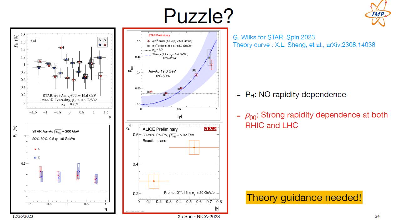 Sun Xu from the Institute of Modern Physics (Lanzhou, China) spoke about an interesting and as yet unexplained phenomenon: the polarisation of hyperons depends significantly less on the particle velocity than the polarisation of vector mesons.