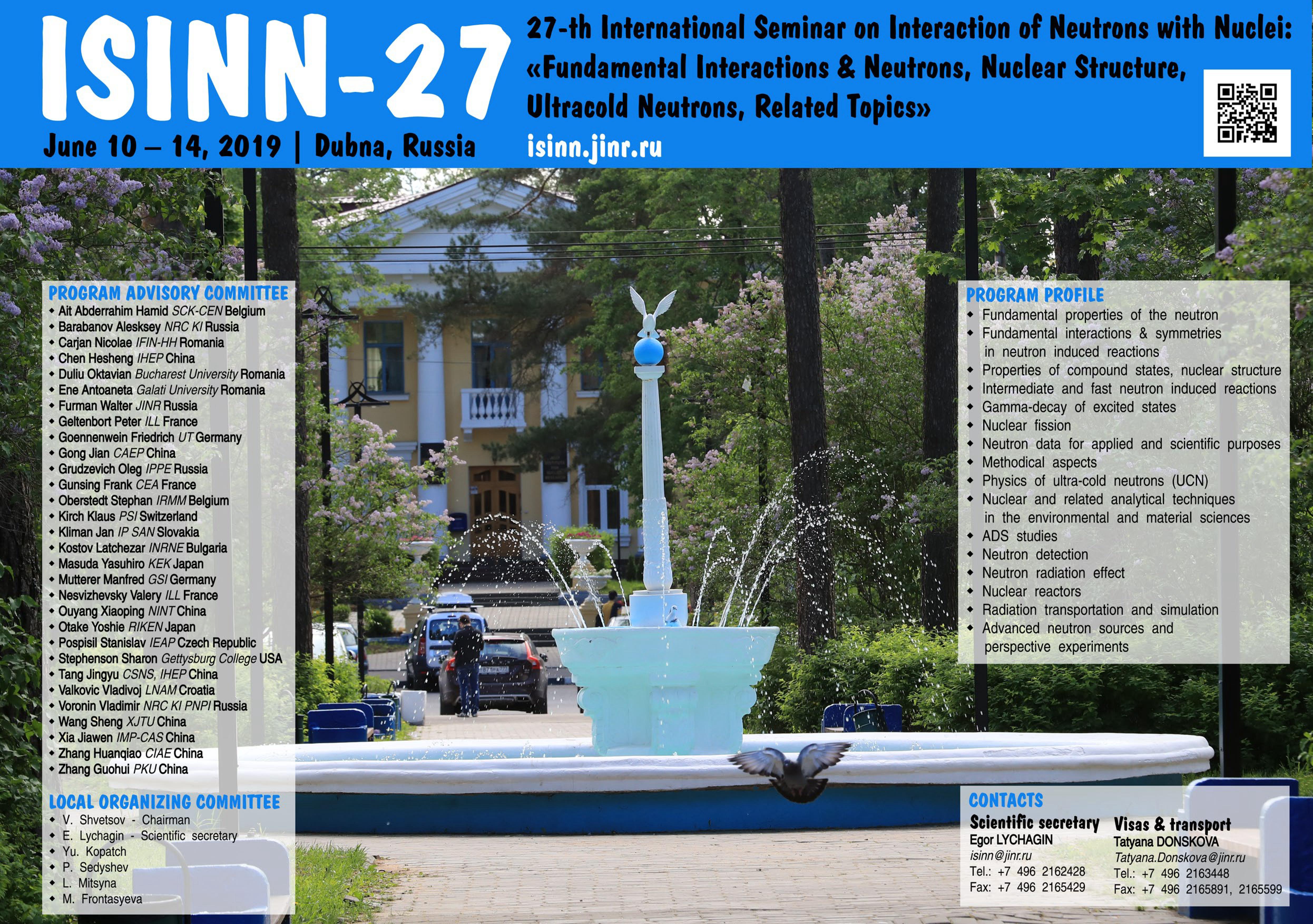 10 июня 2019 г. в Доме международных совещаний в Дубне начнет свою работу 27-е Международное совещание по взаимодействию нейтронов с ядрами (ISINN-27), которое уже более 25 лет привлекает в Дубну специалистов из ведущих центров России и мира.