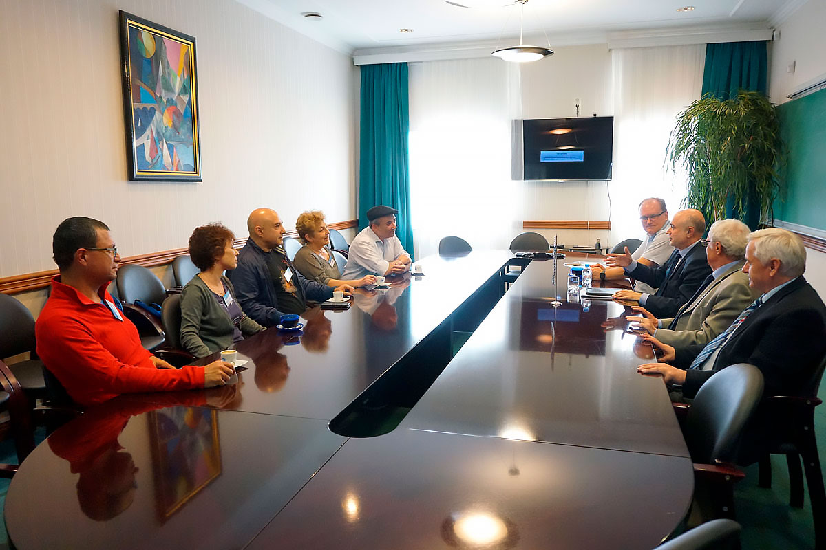 The visit of the Israeli delegation was finished with the reception at the JINR Directorate, where the guests were welcomed by JINR Chief Scientific Secretary A.S. Sorin, JINR Vice-Directors M.G. Itkis and R. Lednický, UC Director S.Z. Pakuliak. Members of the delegation expressed hope for strengthening of friendly and business relations between the HEMDA Centre and JINR and spoke about plans to organize a visit of a group of talented school students from Israel to carry out projects on the basis of JINR